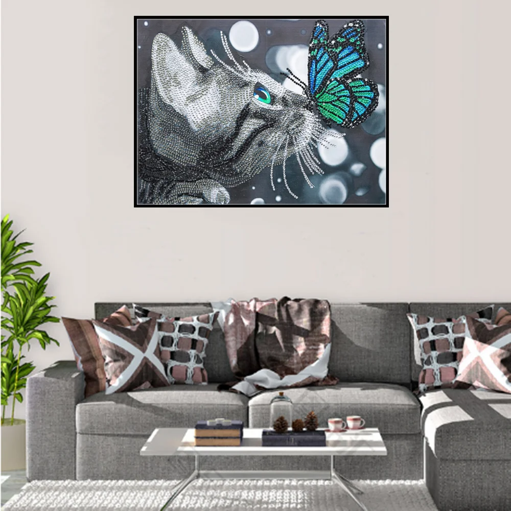 Алмазная живопись кошка бабочка особой формы изображения для алмазной вышивки Стразы Вышивка крестом Алмазная мозаика домашний декор