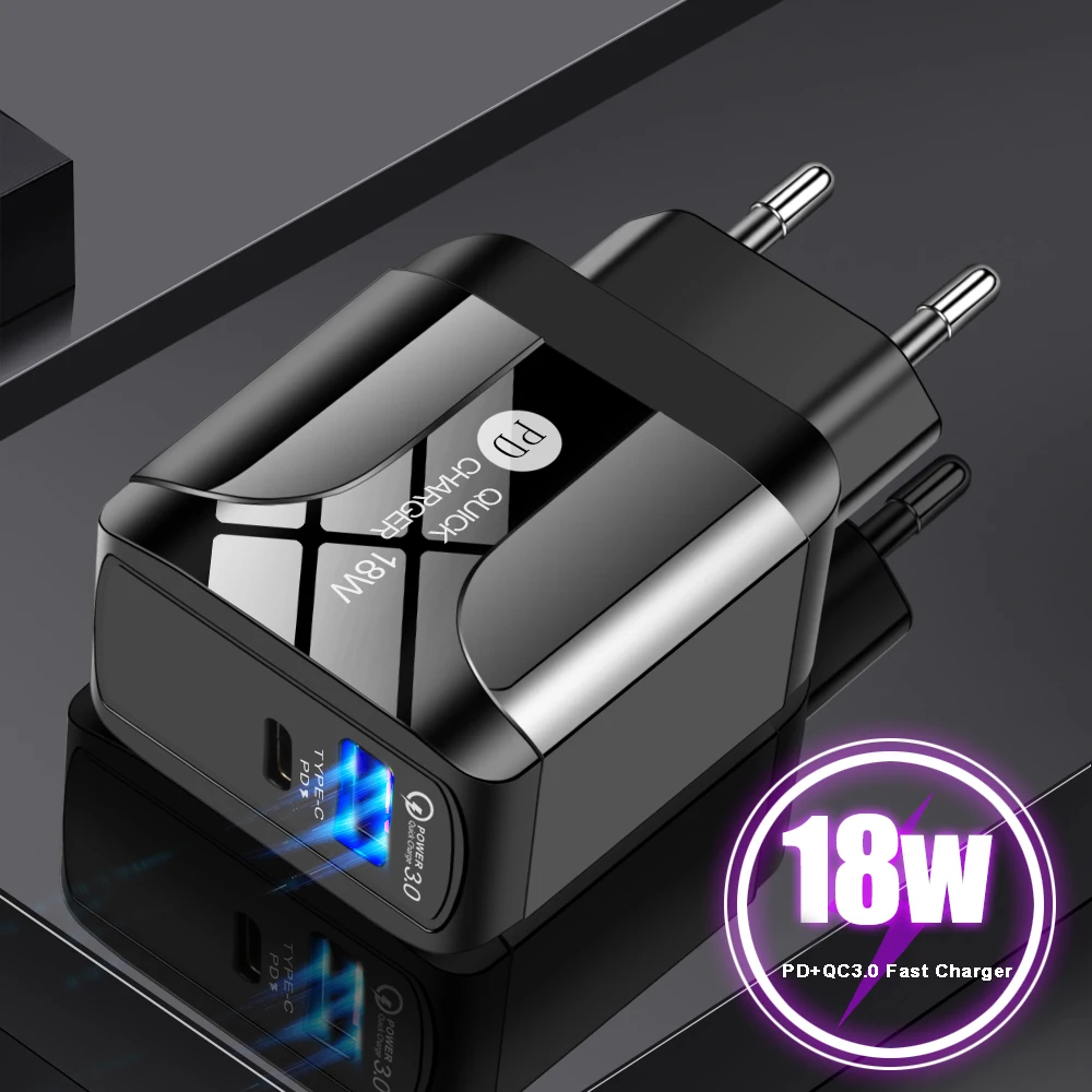 Адаптер для быстрой зарядки PD 18 Вт QC 3,0 с двумя портами для пут...