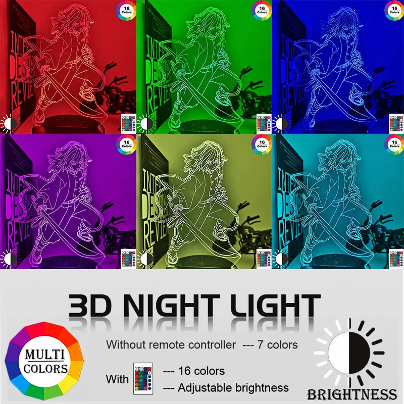 3d светодиодный ночной Светильник аниме демон убийца Kimetsu без Ya...