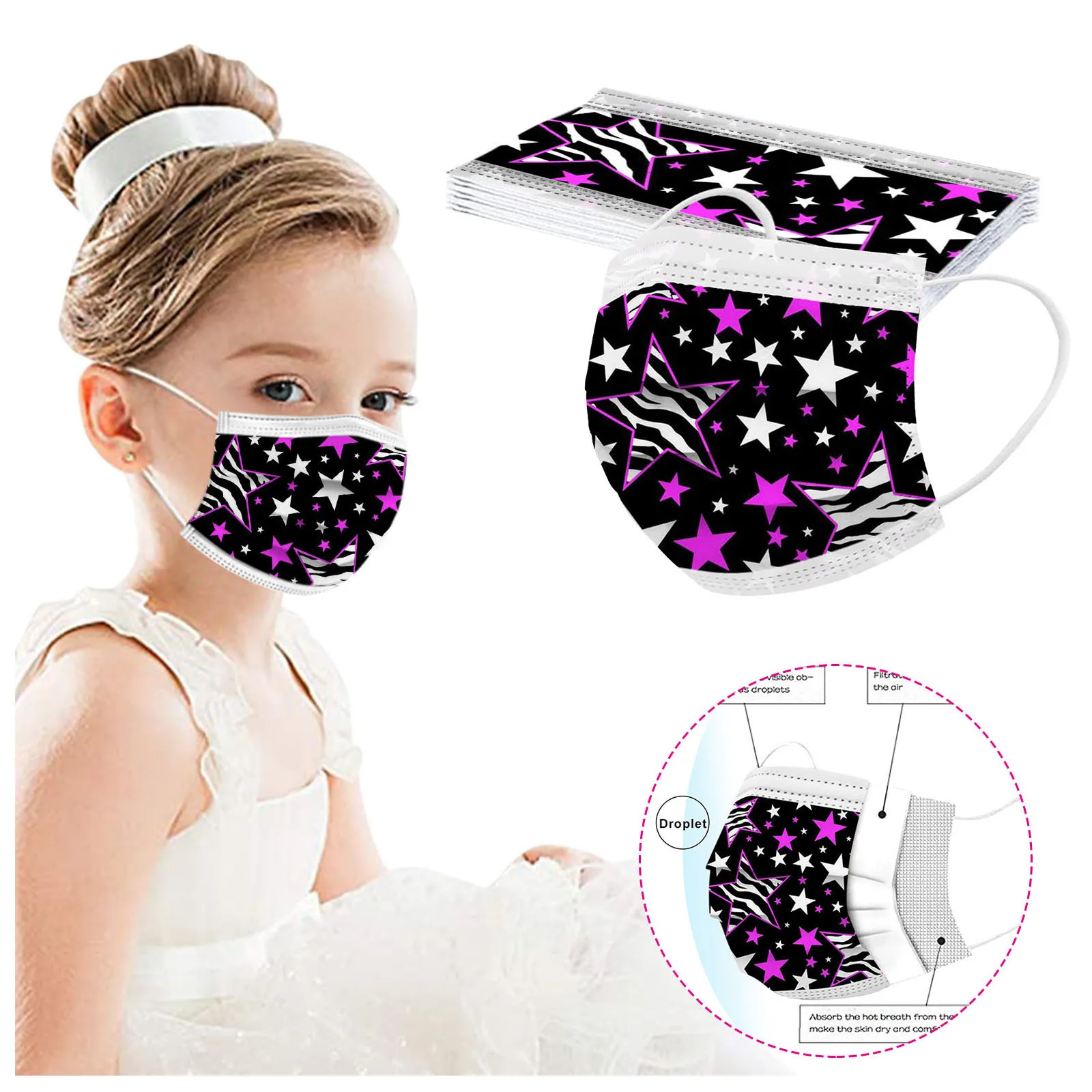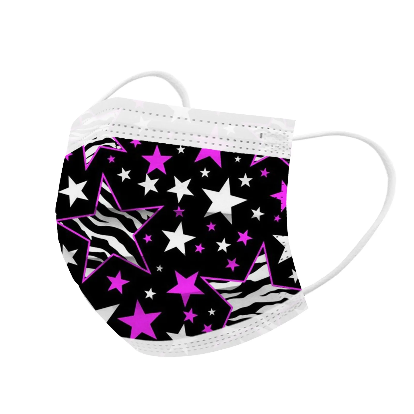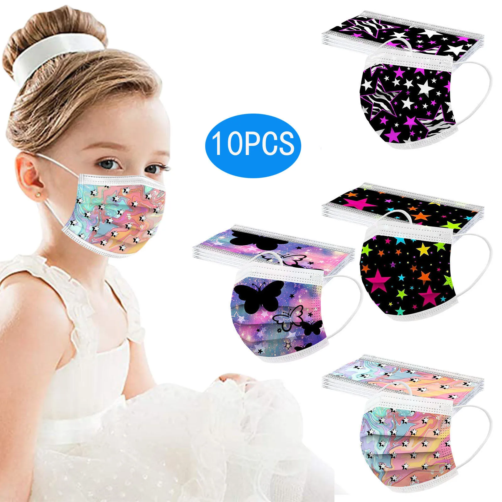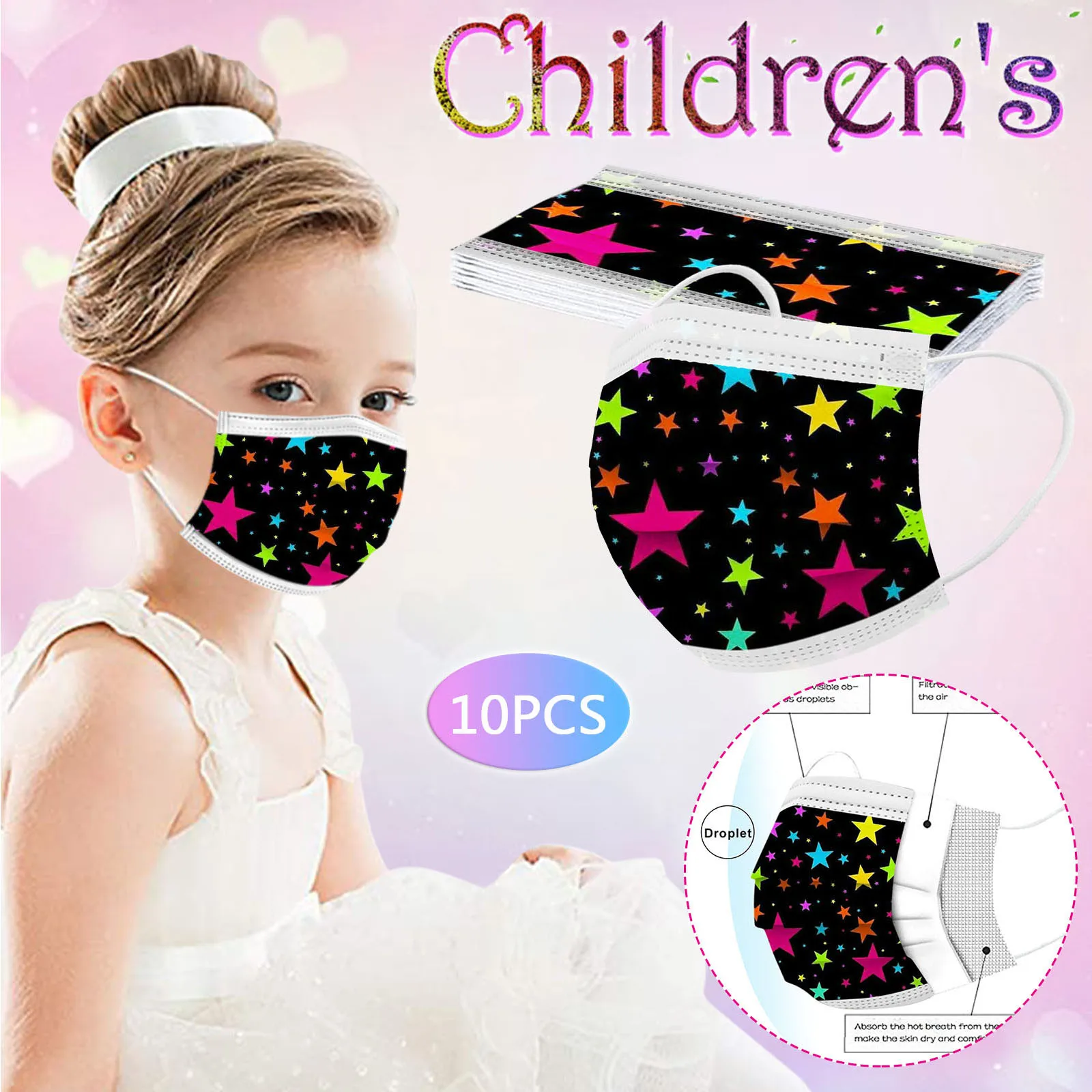 Детские маски для рта 10 шт., одноразовые маски для лица с цветным принтом со звездами, 3 слоя маски для ушей, дышащие маски для лица для девочек