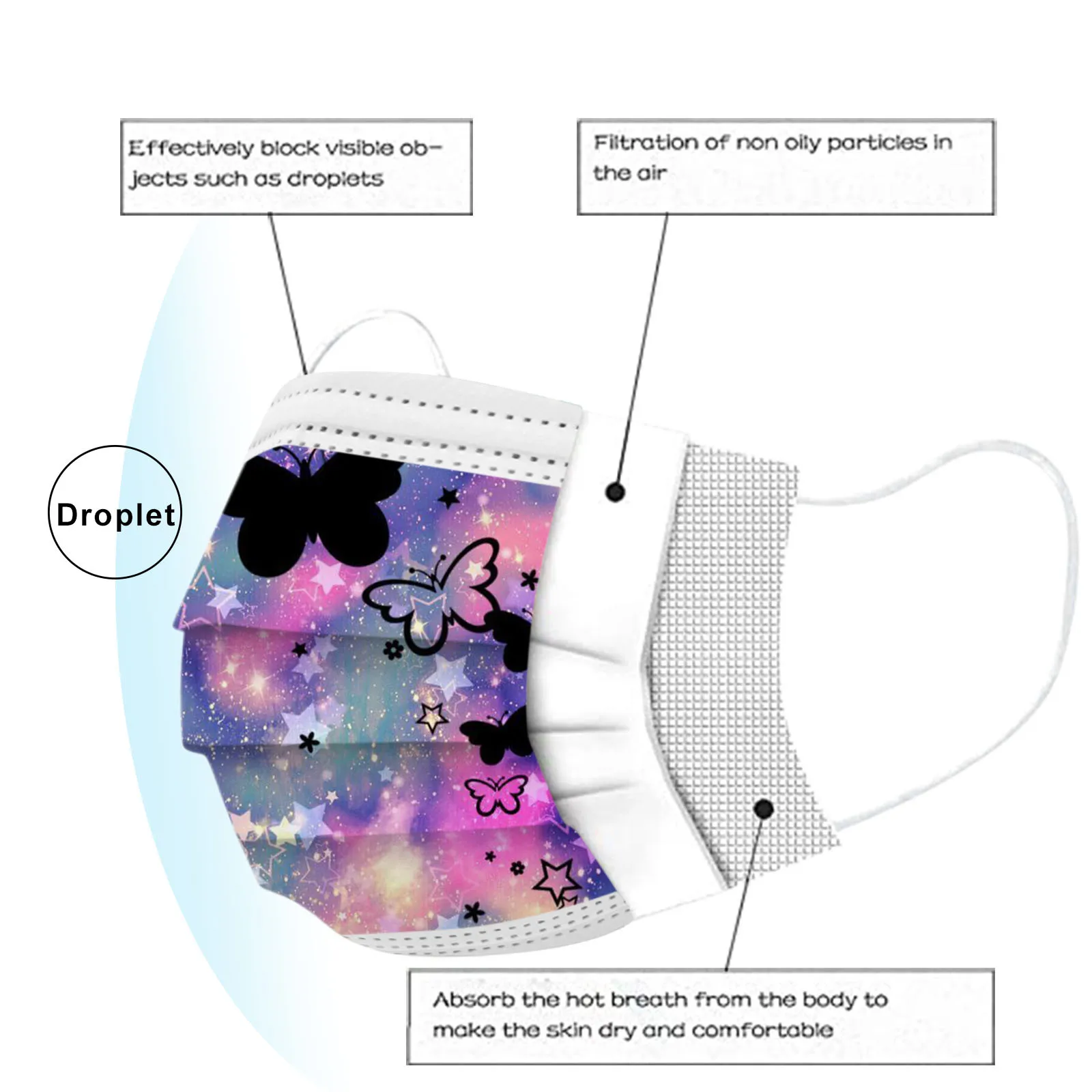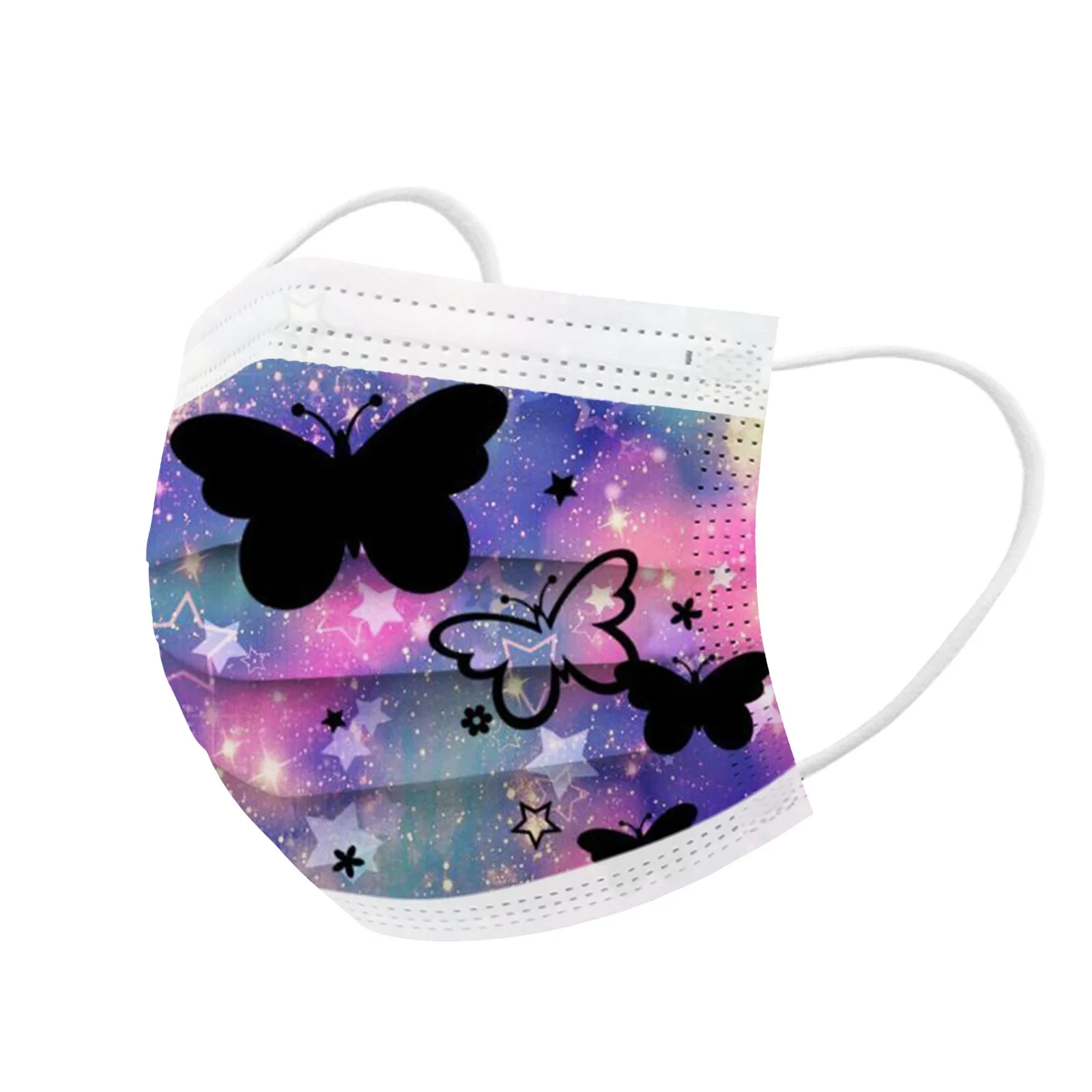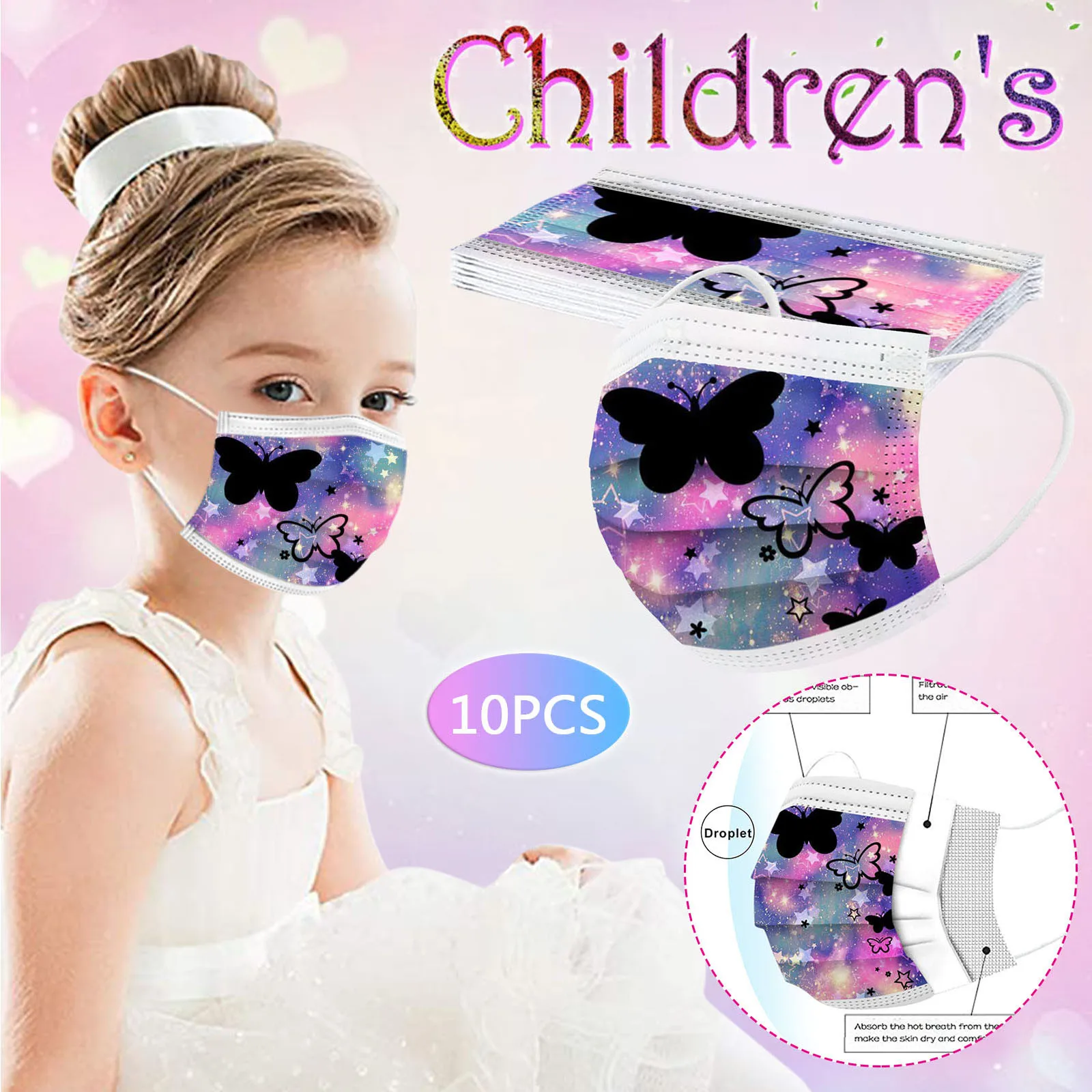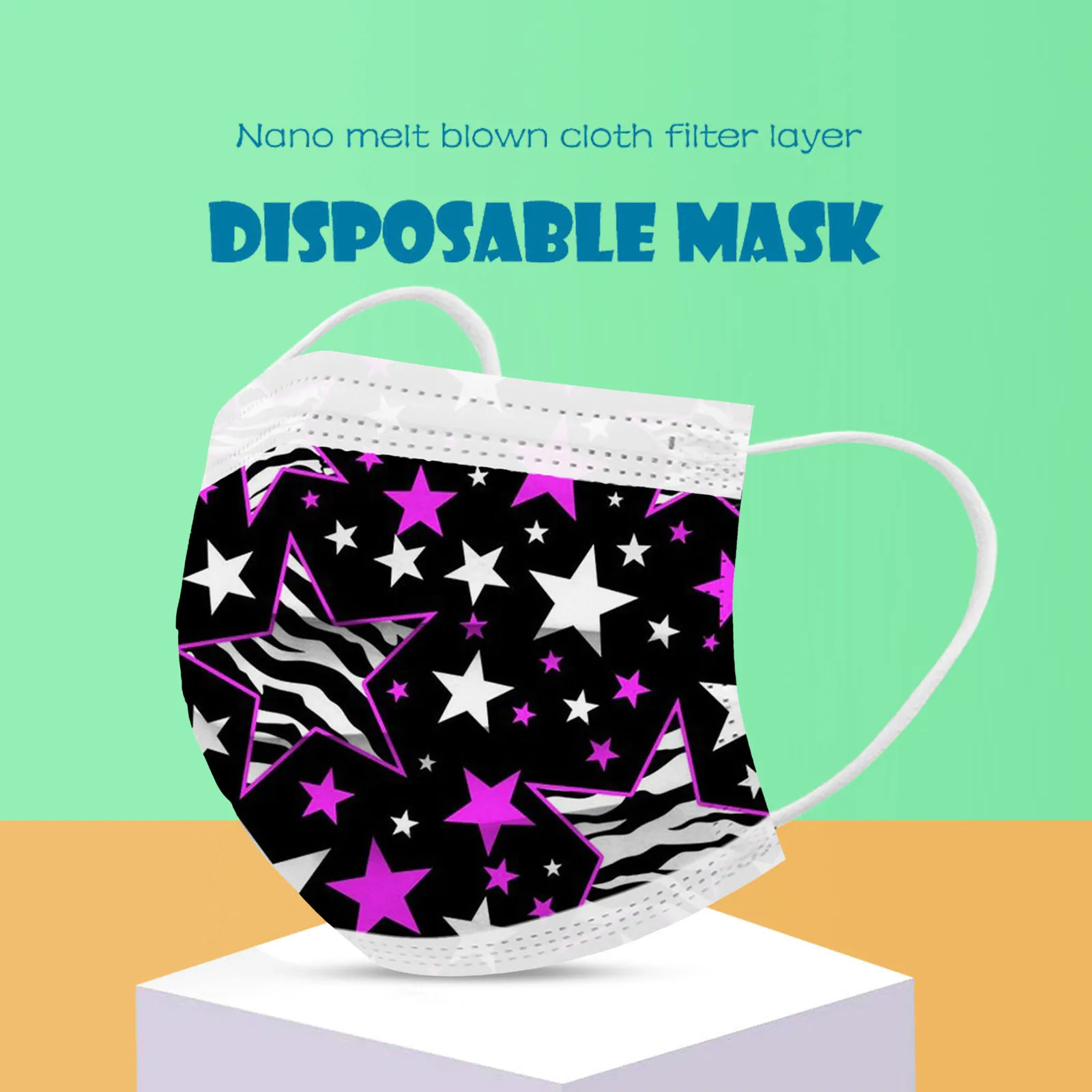 Детские маски для рта 10 шт., одноразовые маски для лица с цветным принтом со звездами, 3 слоя маски для ушей, дышащие маски для лица для девочек
