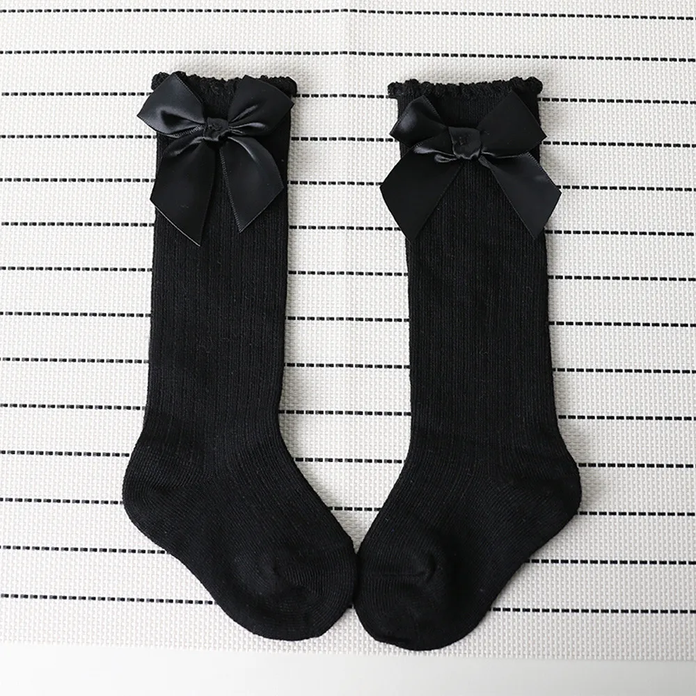 Новинка, детские носки, большие Хлопковые гольфы с бантом для маленьких девочек, длинные мягкие хлопковые трикотажные изделия кружевные детские носки, длинные мягкие Хлопковые гольфы