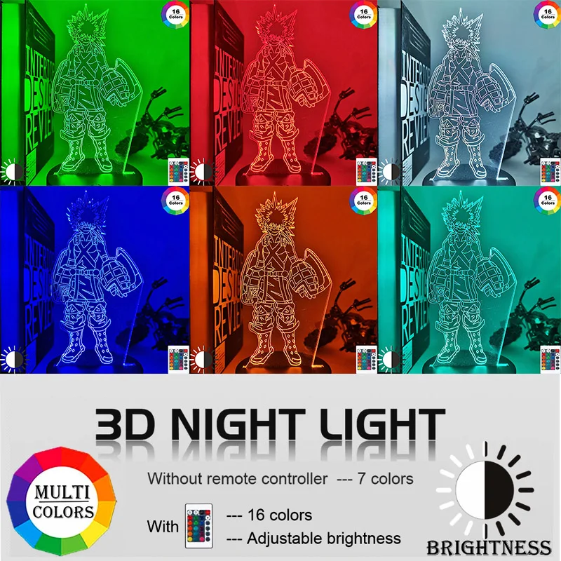 3D лампа Katsuki Bakugo, светодиодный ночник для детской спальни, сенсорный светильник для комнаты, аниме, моя геройская академия, подарок, светодиодный ночник