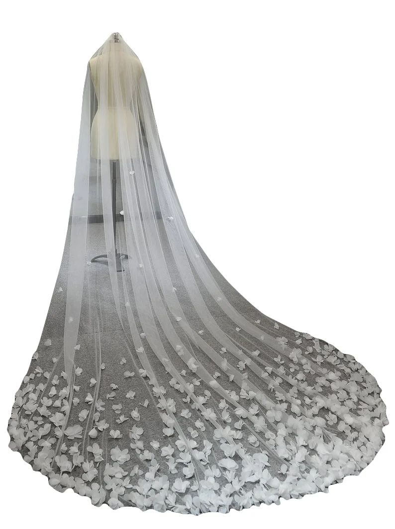 Свадебная фата, роскошная белая Фата с 3D цветами и кружевом для невесты