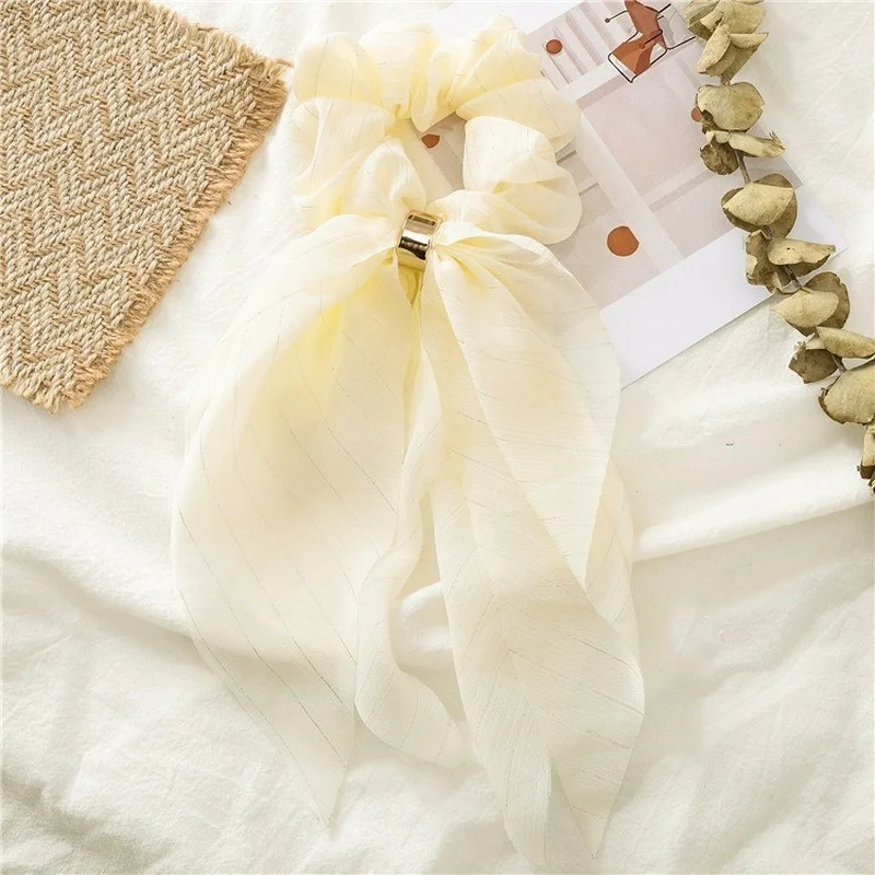 Женские резинки из органзы, эластичная лента, однотонная Длинная лента, держатель для конского хвоста для леди, бант, резинка для волос, круг, 3,8 дюйма, головной убор