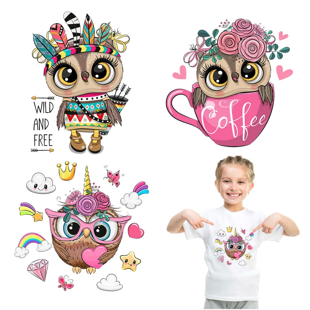 Виниловая нашивка с изображением животных из мультфильма сделай сам, милая нашивки с совой для детской одежды, футболка, аппликация для ногтей