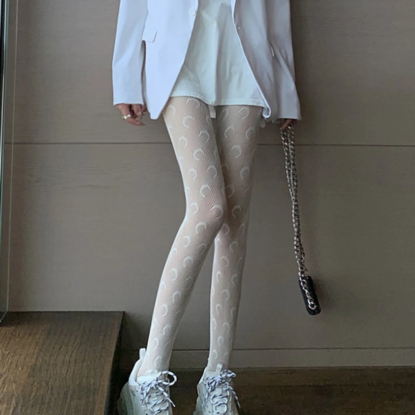 Женские колготки в японском стиле, летние Чулочные изделия с принтом Луны, сетчатые колготки, обтягивающие сексуальные женские комбинезоны, чулки, бесшовная сетка