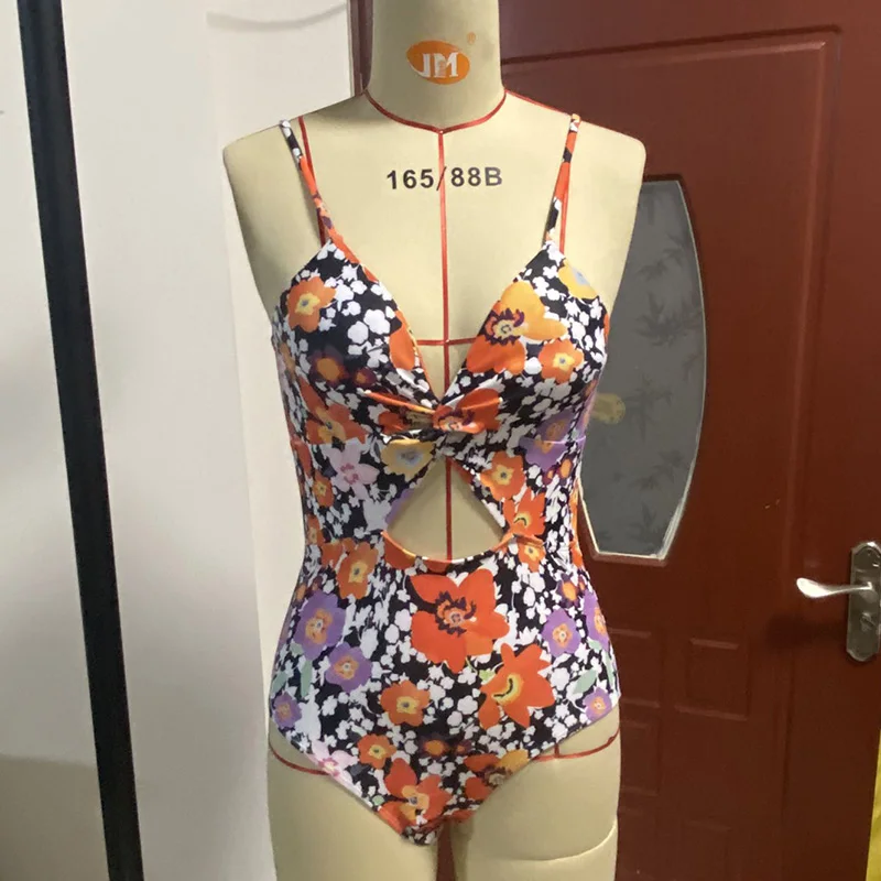 Купальник-монокини Женский, раздельный, с цветочным принтом, пуш-ап