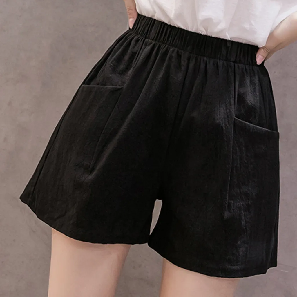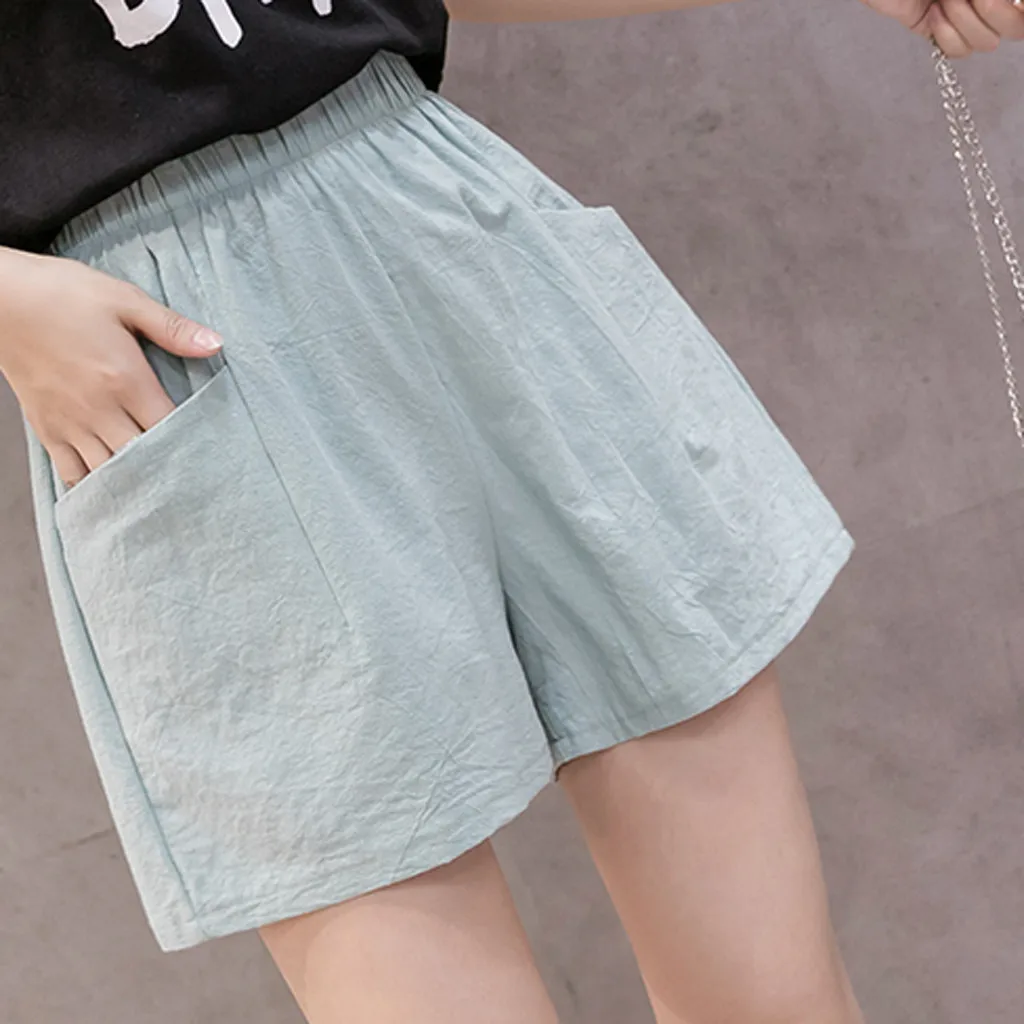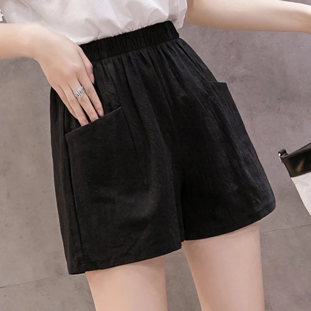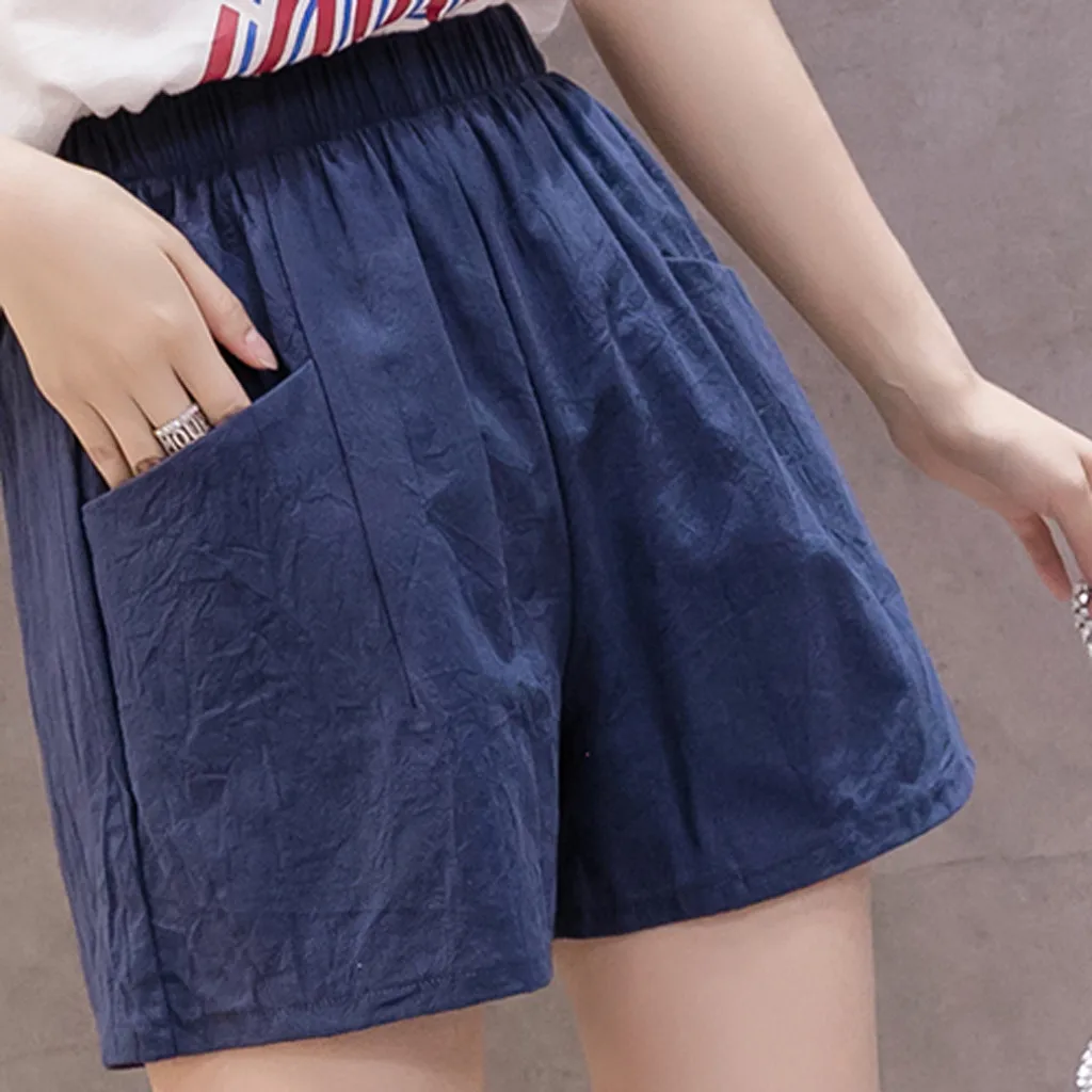 Женские льняные свободные повседневные тонкие широкие льняные шорты с высокой талией