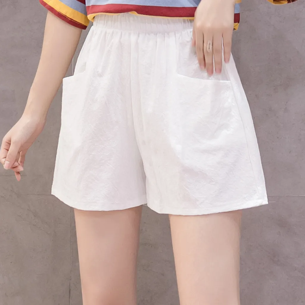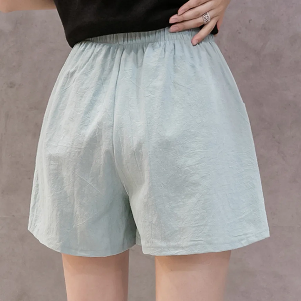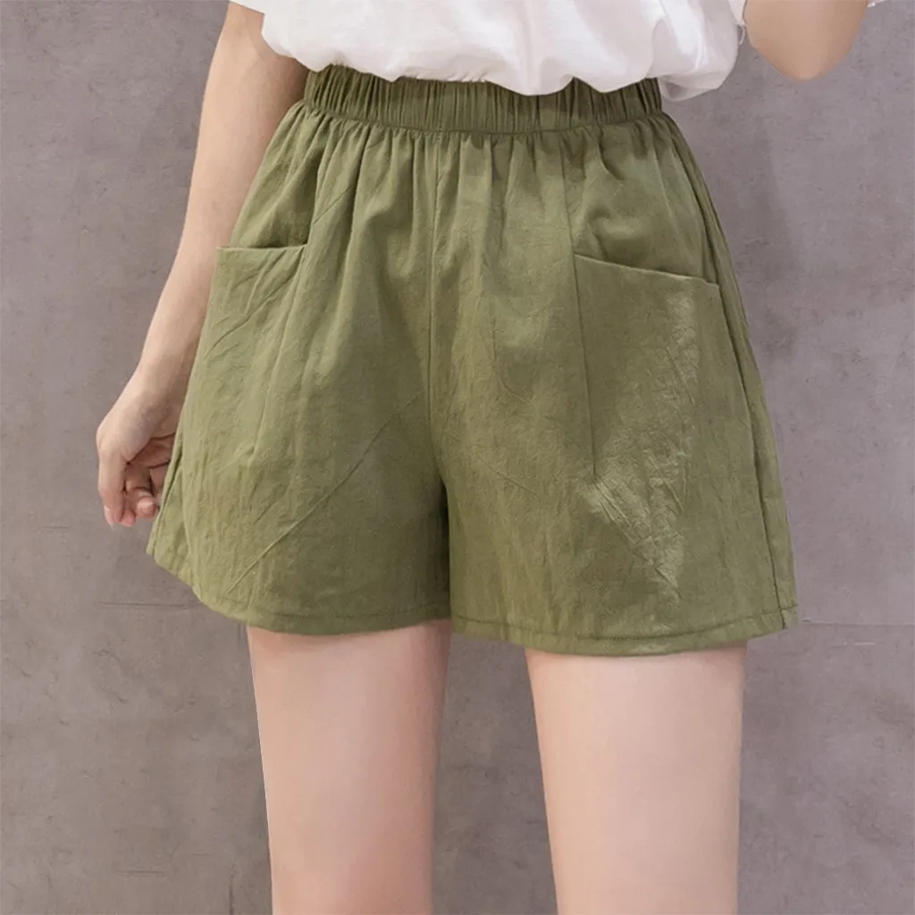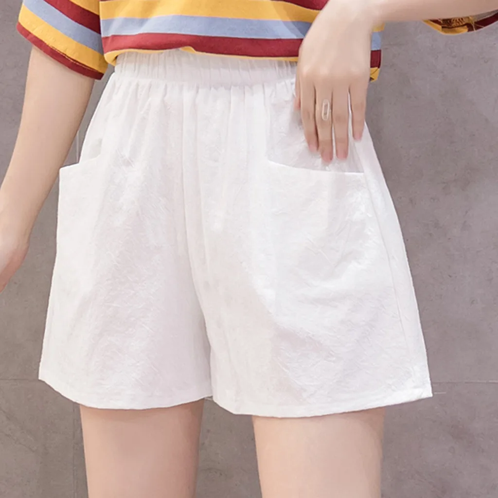 Женские льняные свободные повседневные тонкие широкие льняные шорты с высокой талией