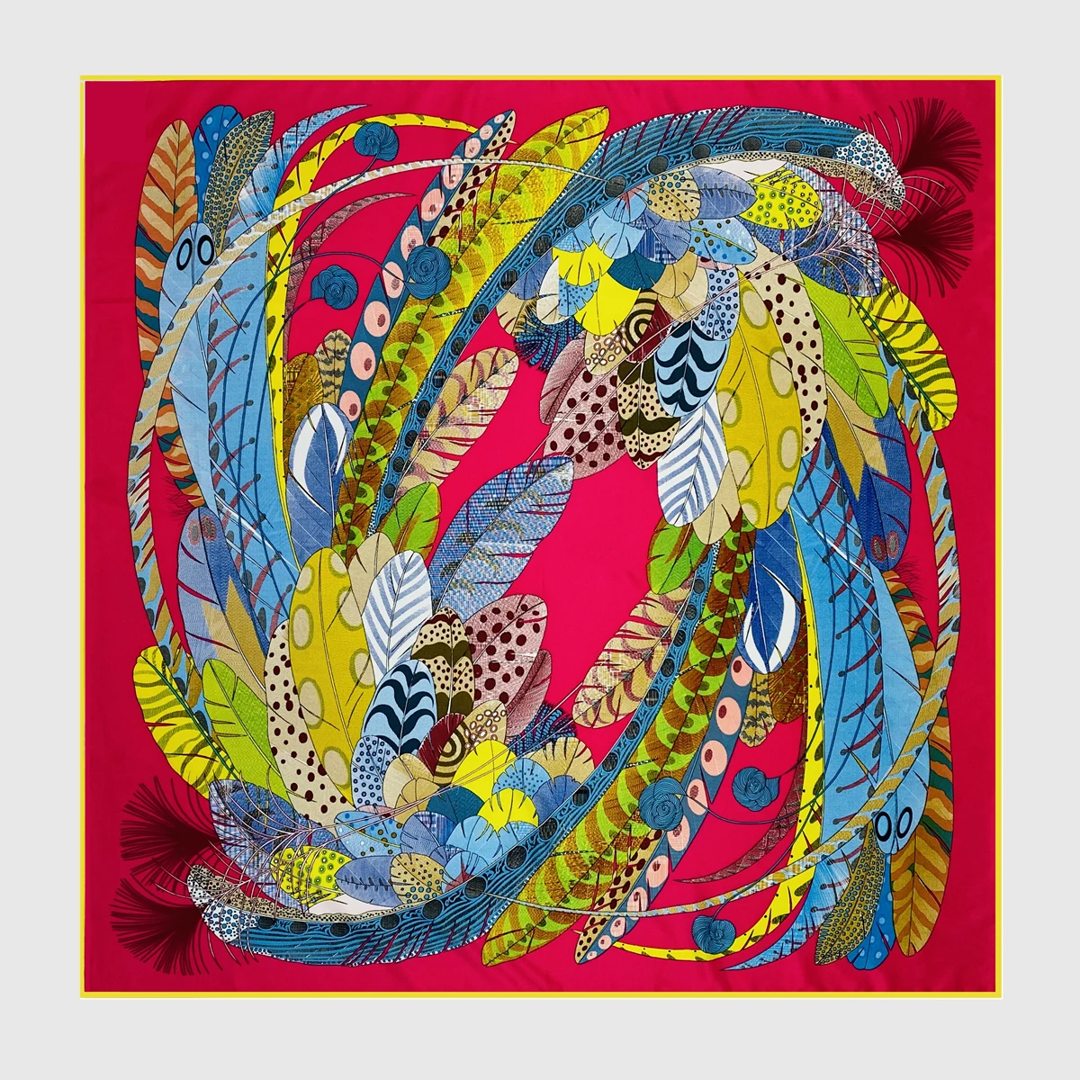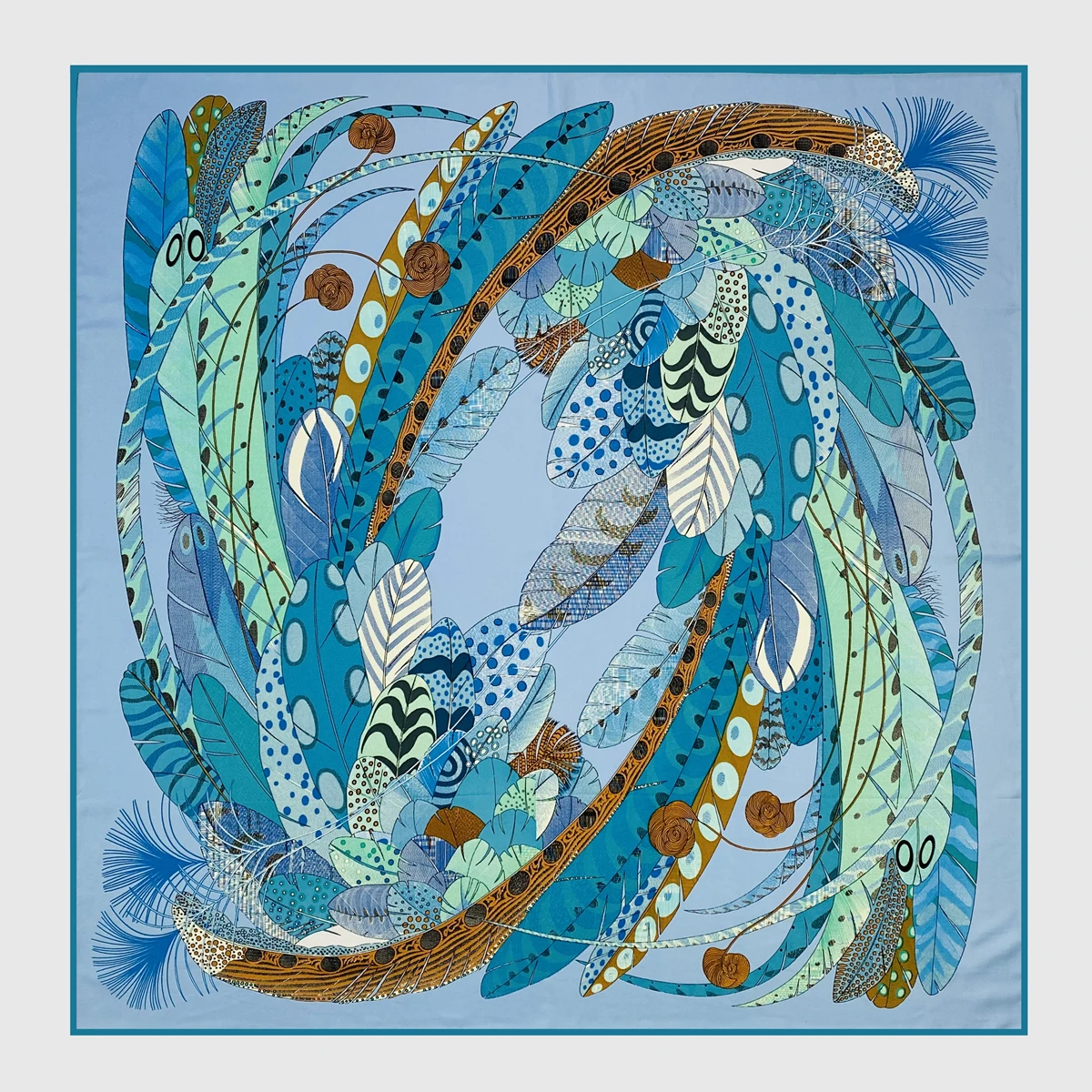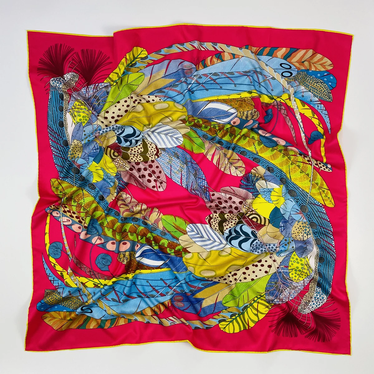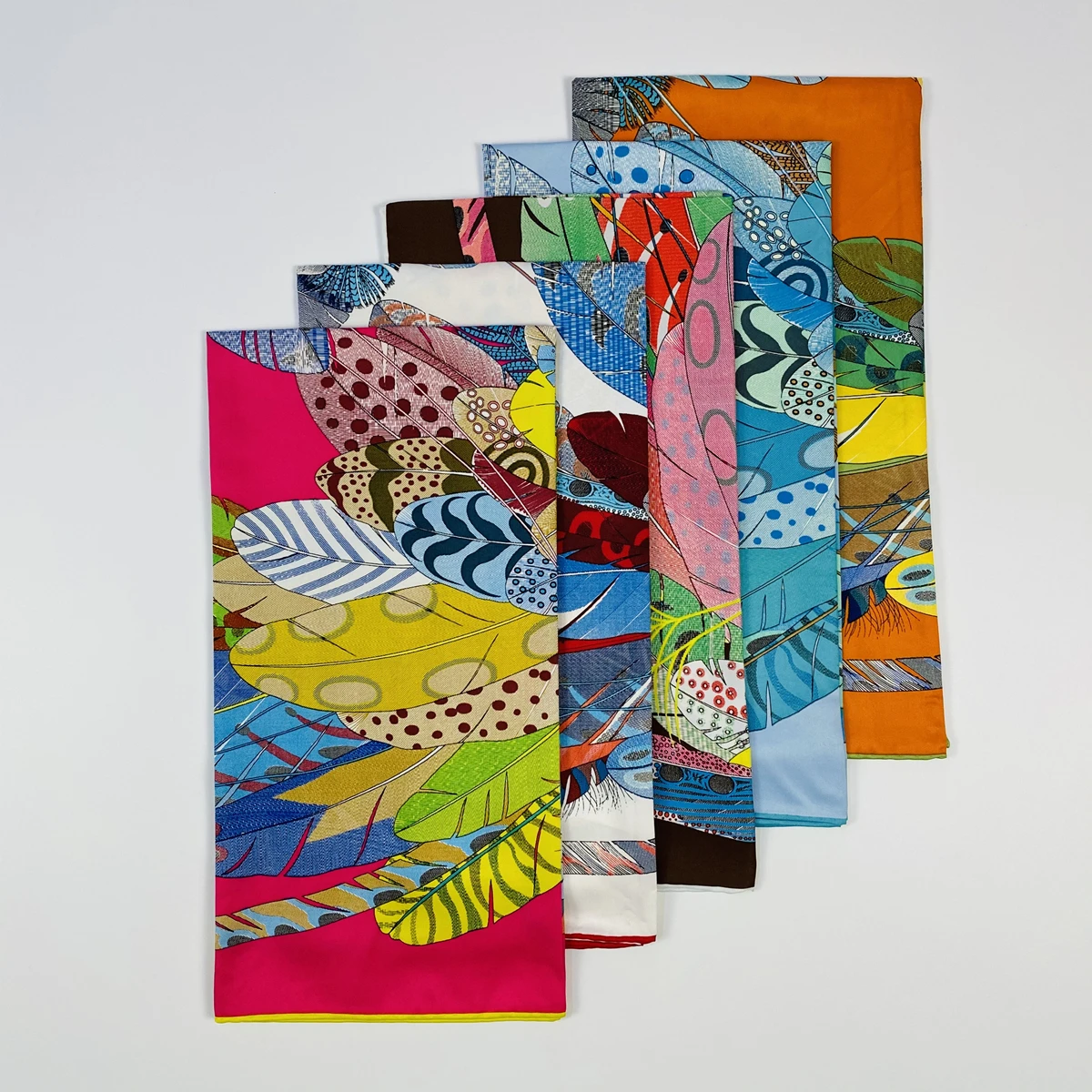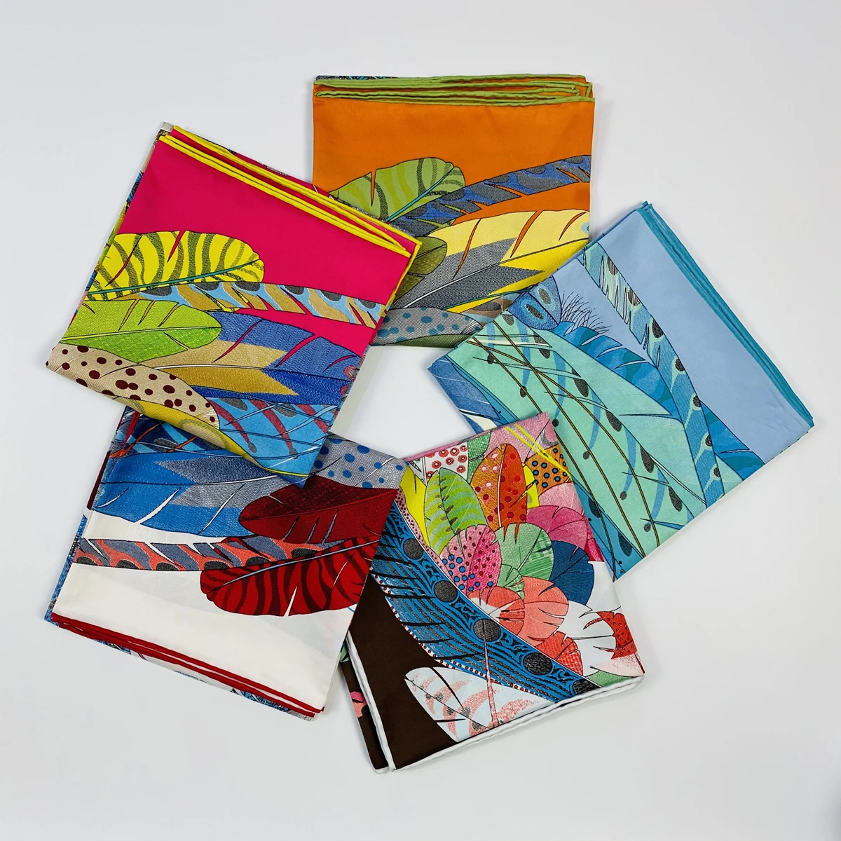 90 см перьевой платок 100% саржевый Шелковый квадратный шарф Женская шаль бренд хиджаб шарф дизайн бандана ручной свернутый подол шарфы