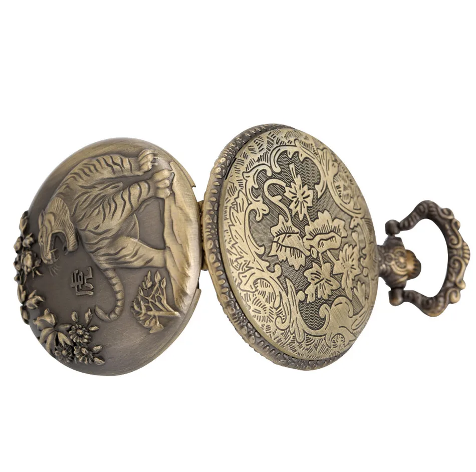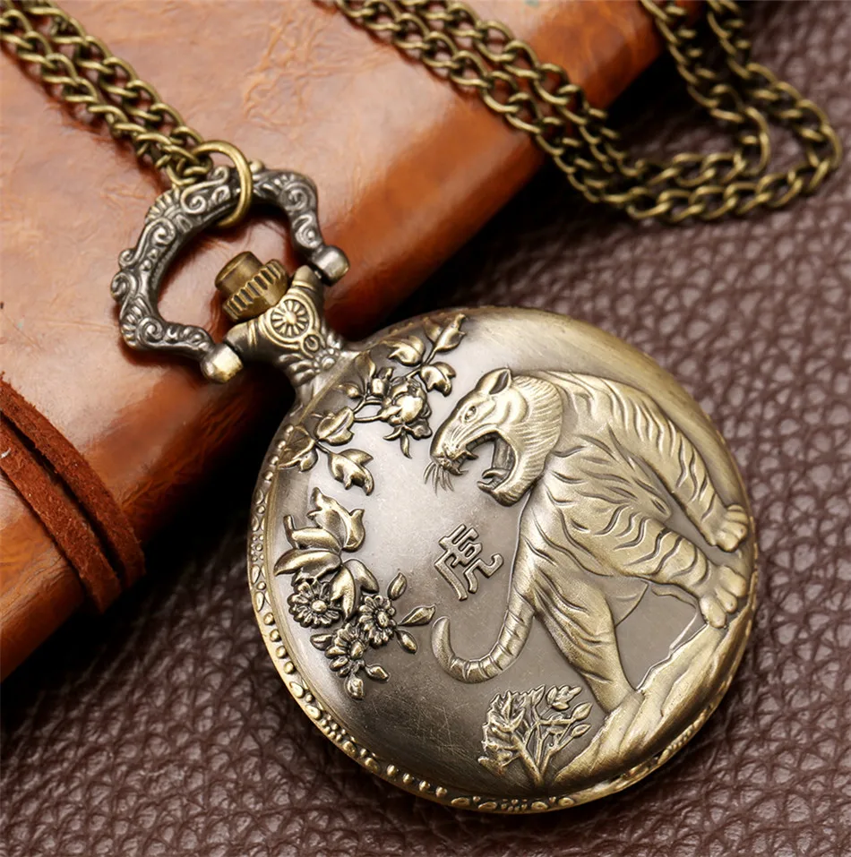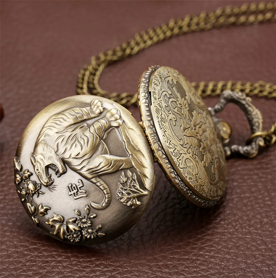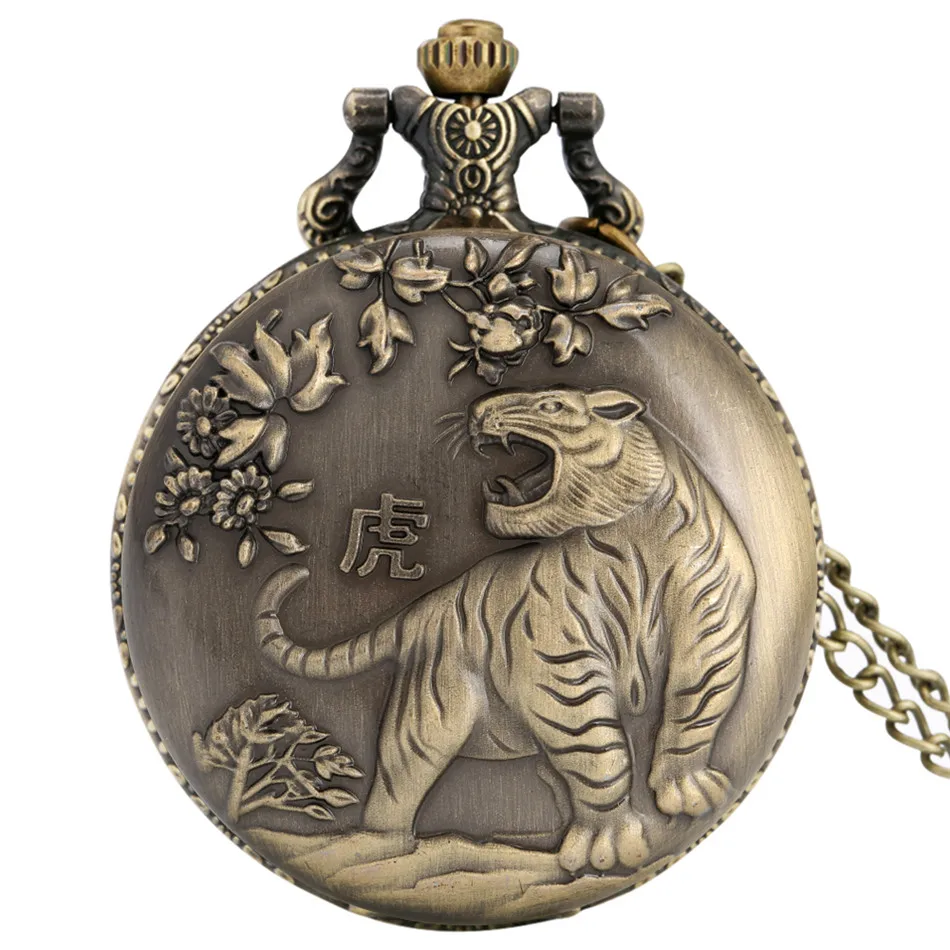 Часы наручные мужскиеженские кварцевые с цепочкой и подвеской в виде зодиака тигра