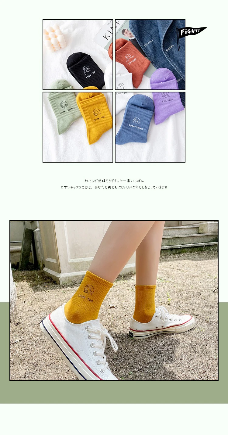 Носки с героями мультфильмов, милые дизайнерские женские носки, кавайные модные носки в Корейском стиле, chaussette femme happy meias, женские носки