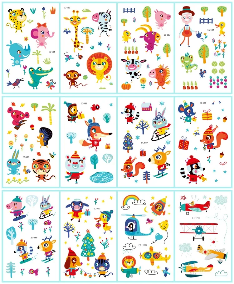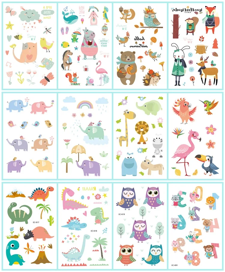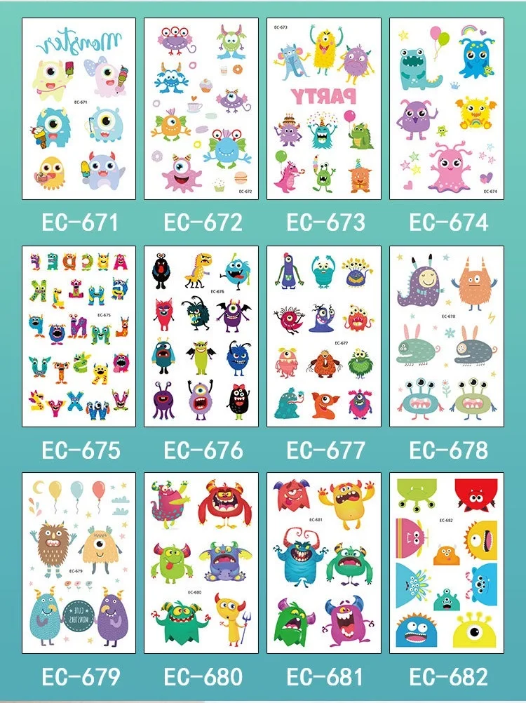 12 шт.компл. 36 видов временные татуировки наклейки для детей Мультяшные водонепроницаемые одноразовые вечерние макияж временные татуировки