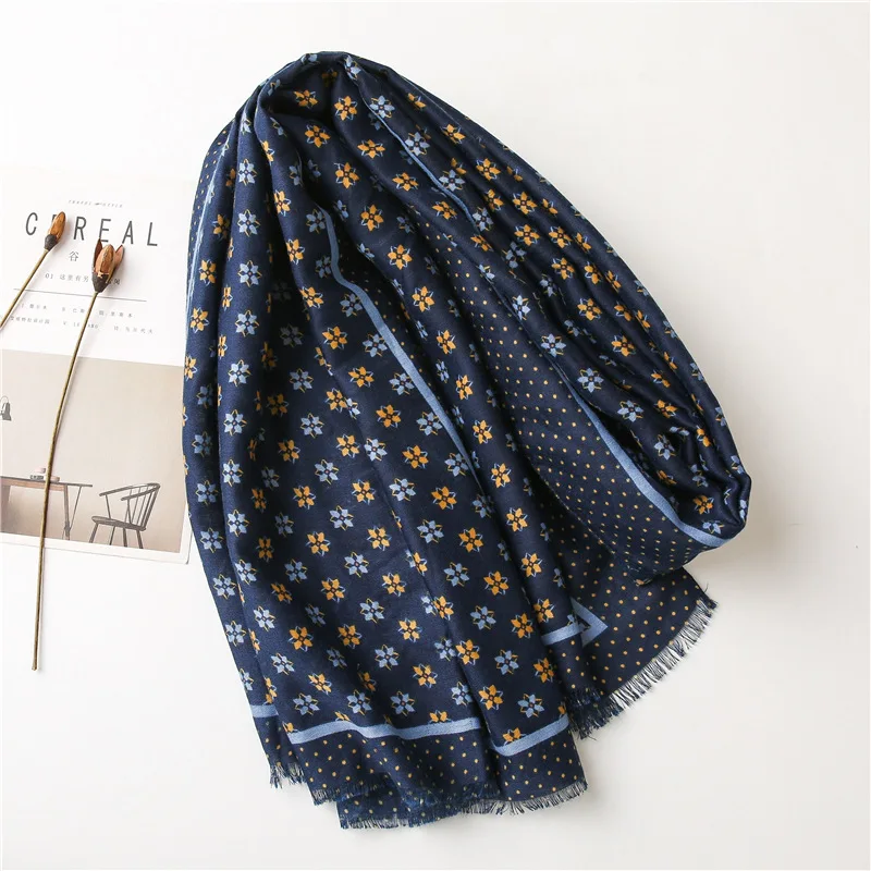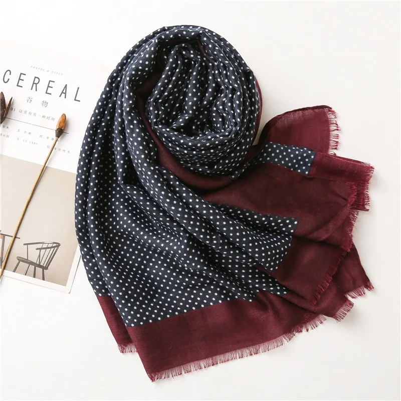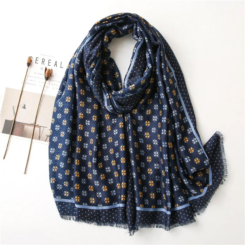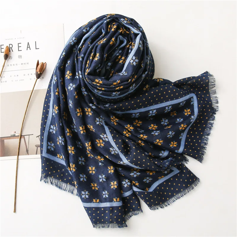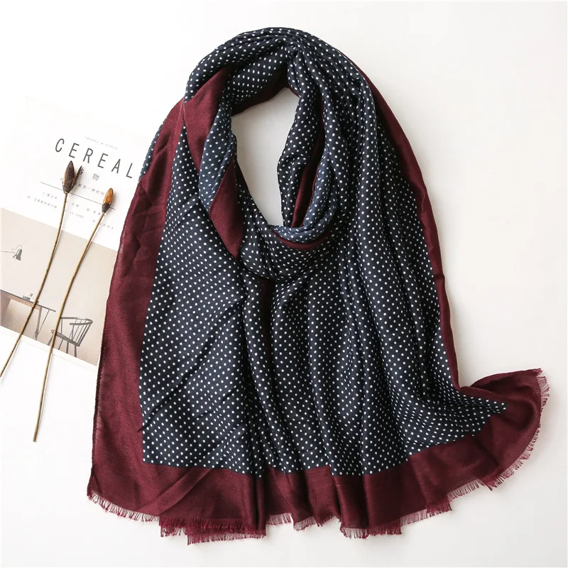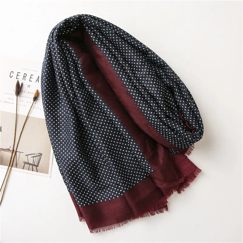 2021 Испания Элитный бренд Темно-синие петля точка бахромой шаль из вискозы шарф леди толстые головные обручи пашминовый палантин мусульманский хиджаб 180*90 см