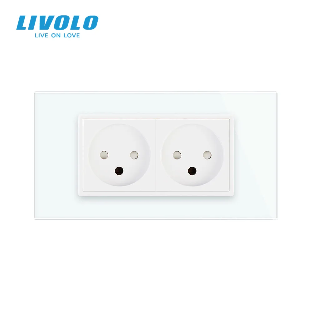 Двойная розетка LIVOLO из Израиля, 16 А, закаленная белаячерная сте...