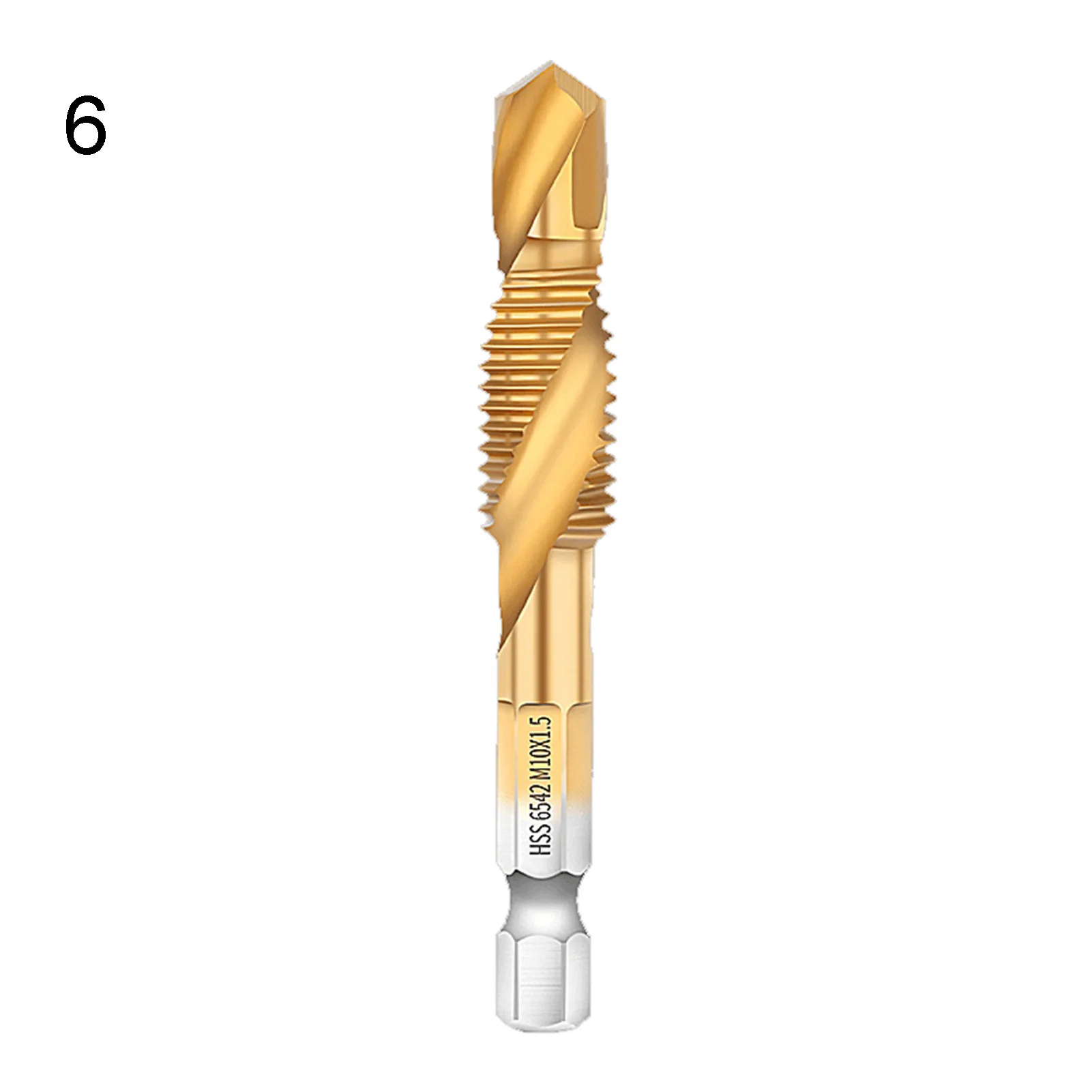 M3-M10 с шестигранным хвостовиком и титановым покрытием, винт из быстрорежущей стали насадка с метрическое сверло под Метчик резьбой для винтового станка, многофункциональные сверлильные инструменты