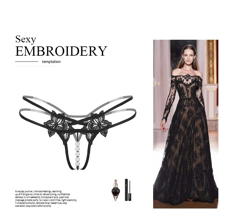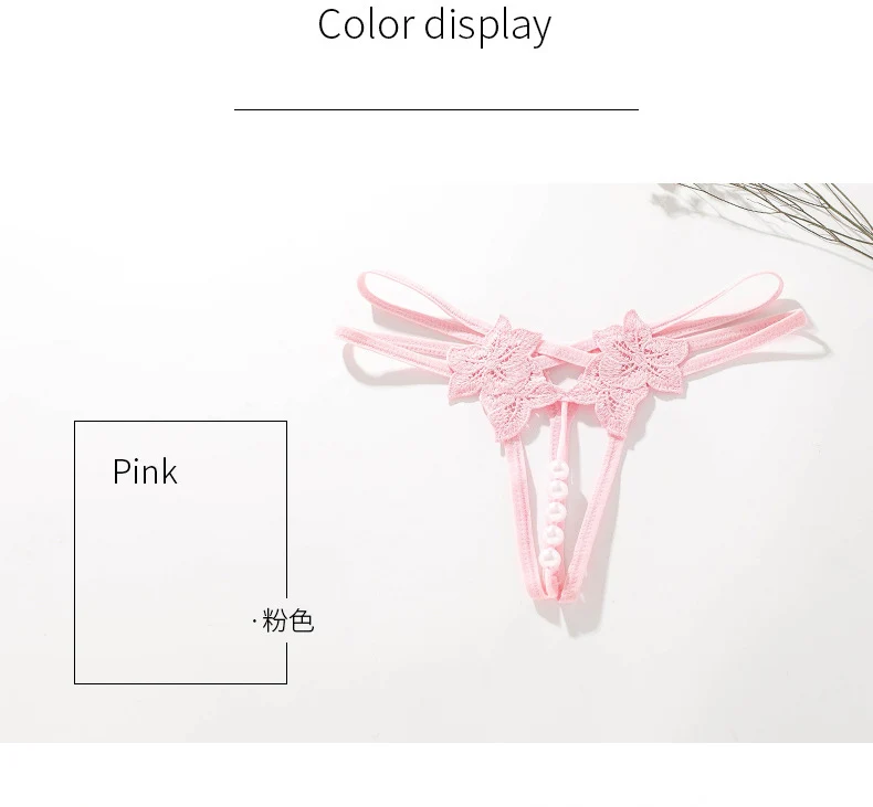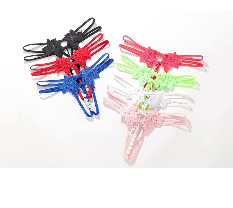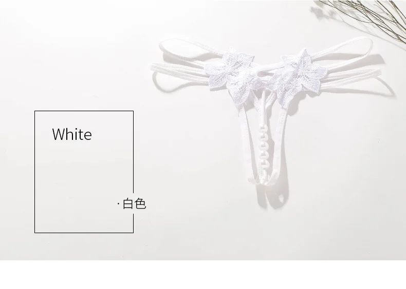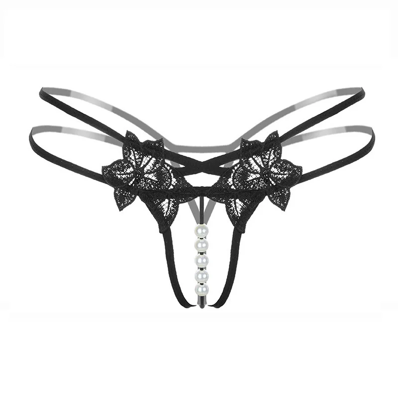 Трусики-стринги женские кружевные с вырезом, трусики с жемчужинами