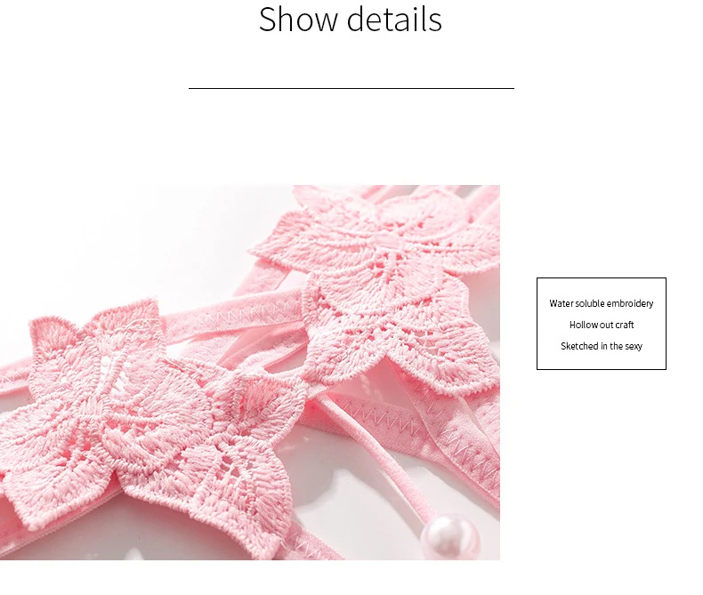 Женские прозрачные трусики-стринги с вышивкой и искусственным жемчугом