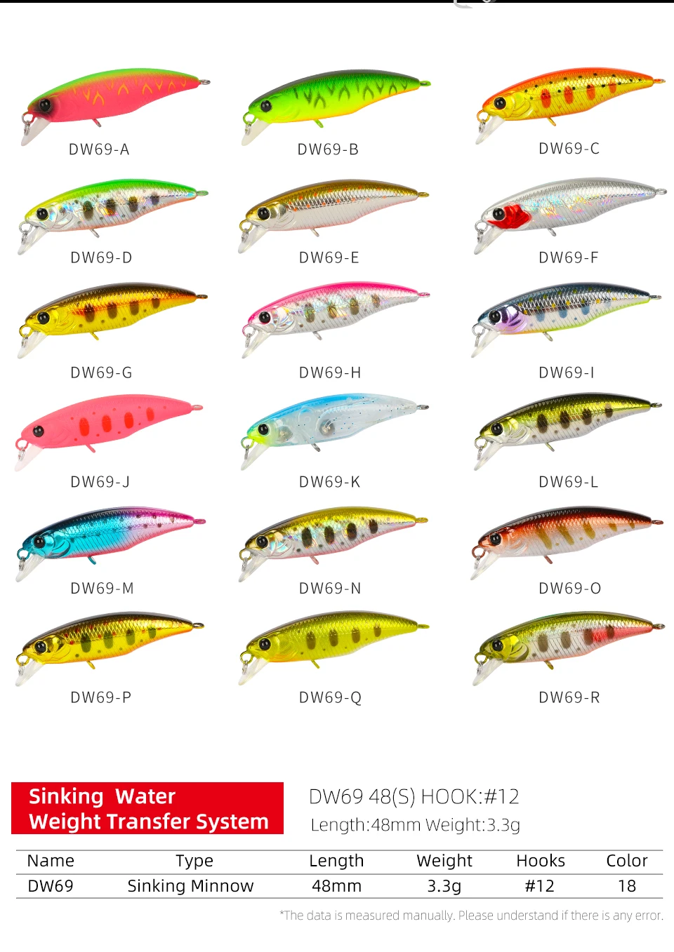 TSURINOYA 48SS рыболовные Тонущая приманка гольян воблеры DW69 48 мм 3,3 г жесткая приманка-Форель Приманка для окуня 18 цветов кренкбейт приманка