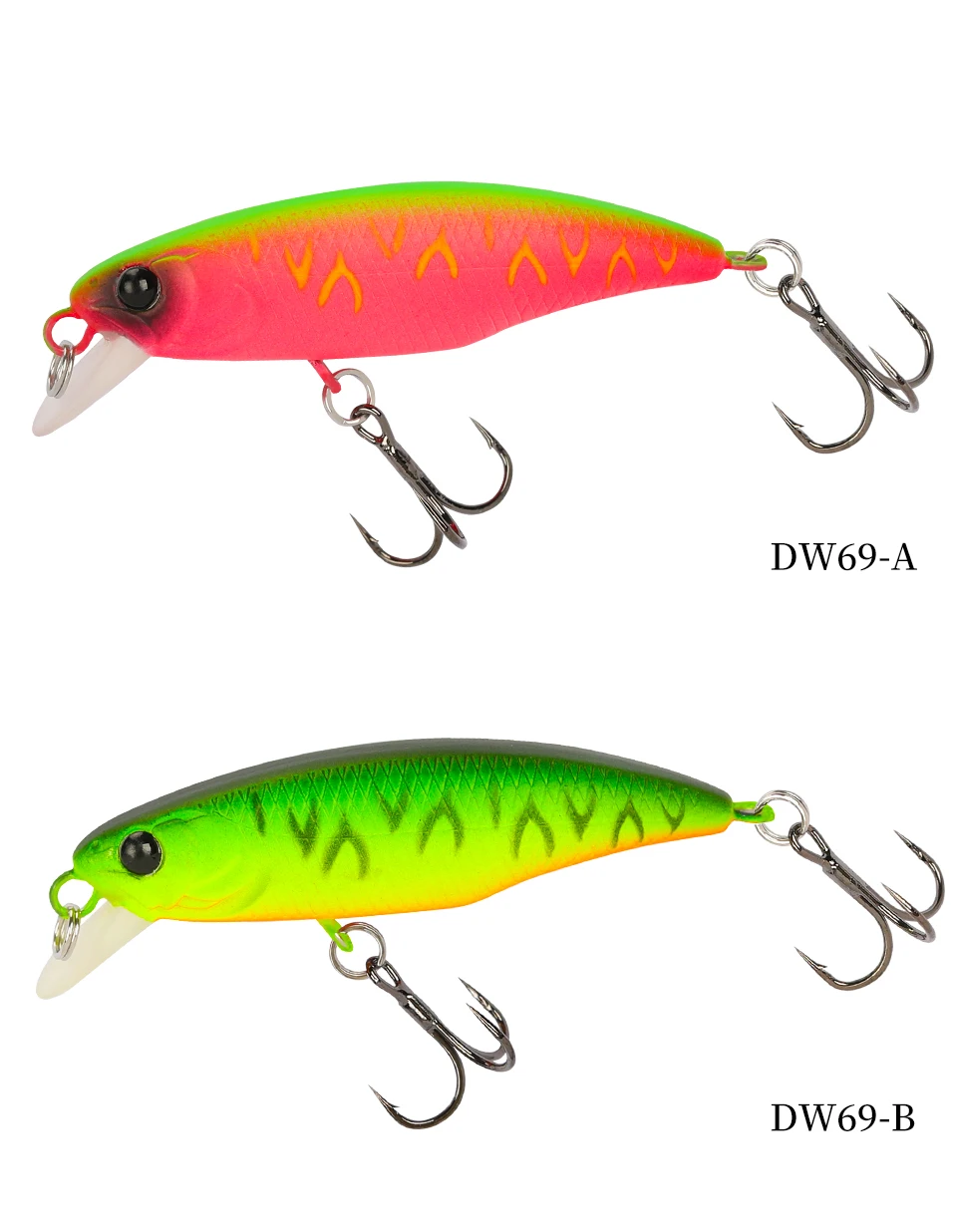 Характеристики продукта:1. DW69 упаковывает смелый удар намного больше, чем предполагал бы его маленький каркас.2. Подавляющее «воздействие» генерируется маленьким телом, скрытым в акробате. Метод утонченности деятельности minnow разработан для того, чтобы подойти к «деликатным» и «смелым» против медленной большой рыбы.3. Активная система подвижного баланса обеспечивает непревзойденное расстояние отливки для его размера и направляет спасательные плавательные действия.Информация о продукте:1. Название: TSURINOYA DW69 блесна2. Тип: затонувшая блесна жесткая приманка3. Длина: 48 мм4. Вес: 3,3 г5. Скорость погружения: 0,18 м/с6. Действие: погружающаяся вода7. Цвет: 18 цветов8. Посылка: индивидуальная упаковка