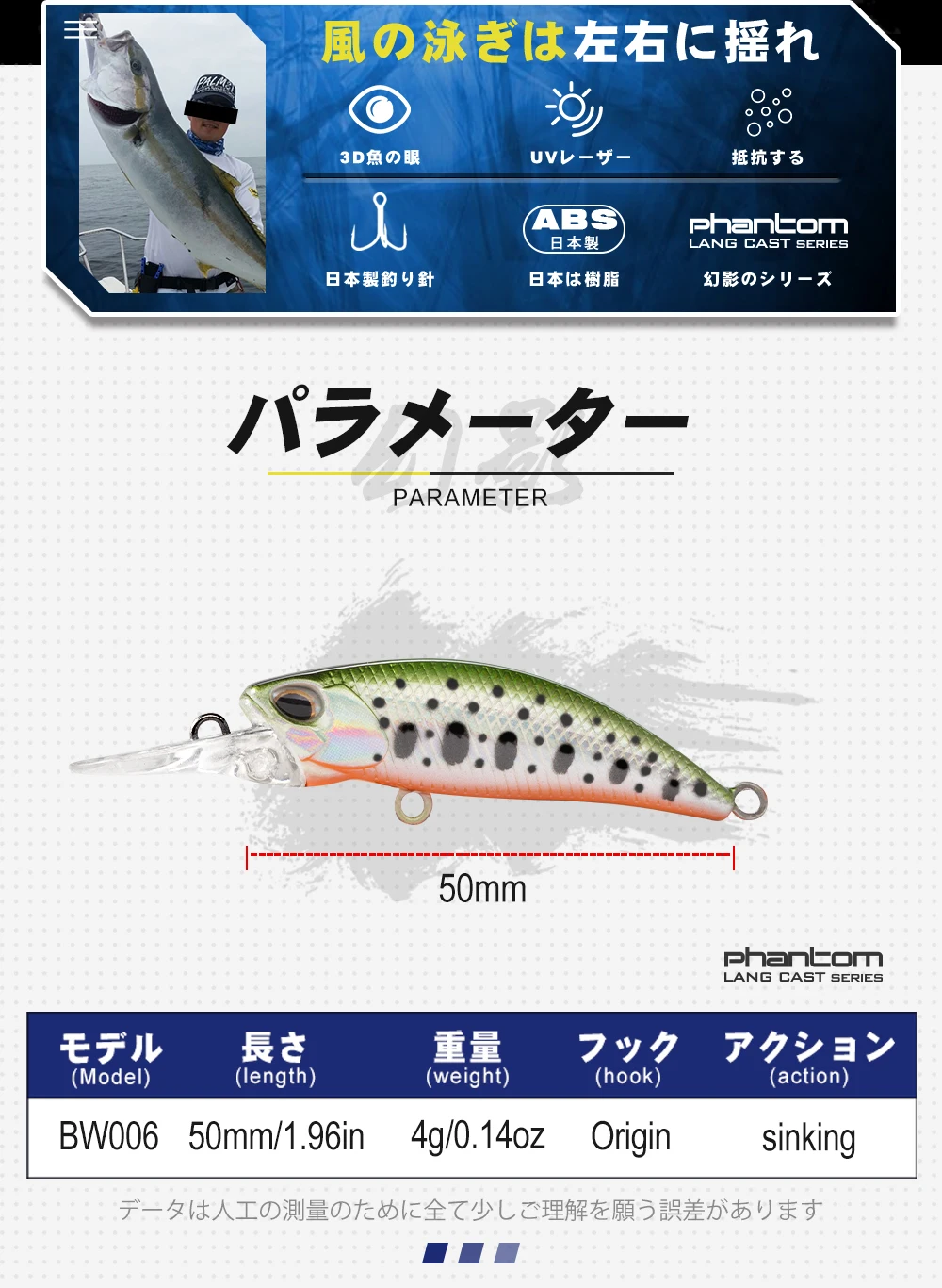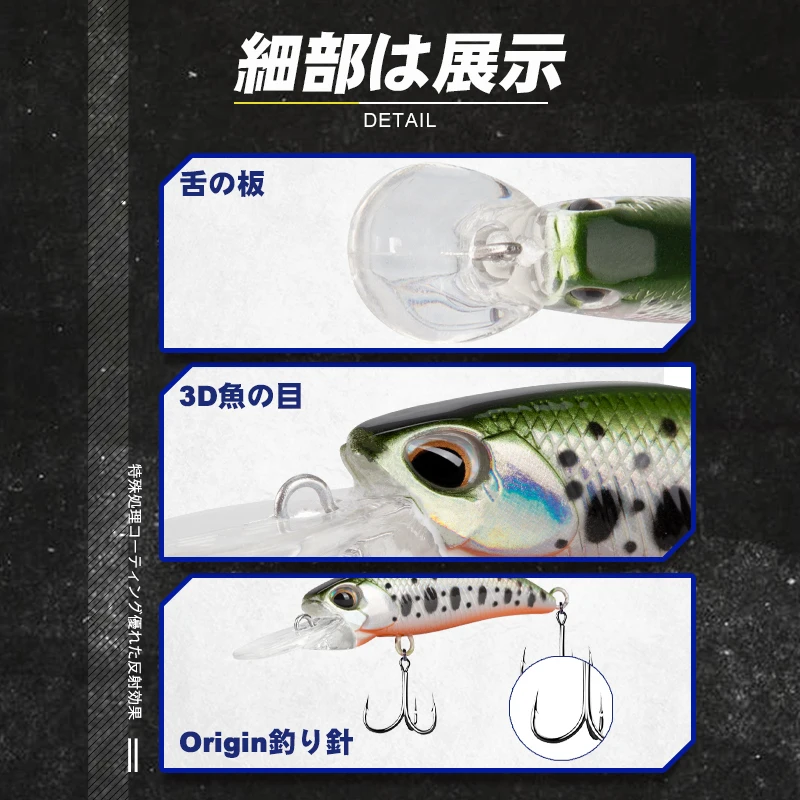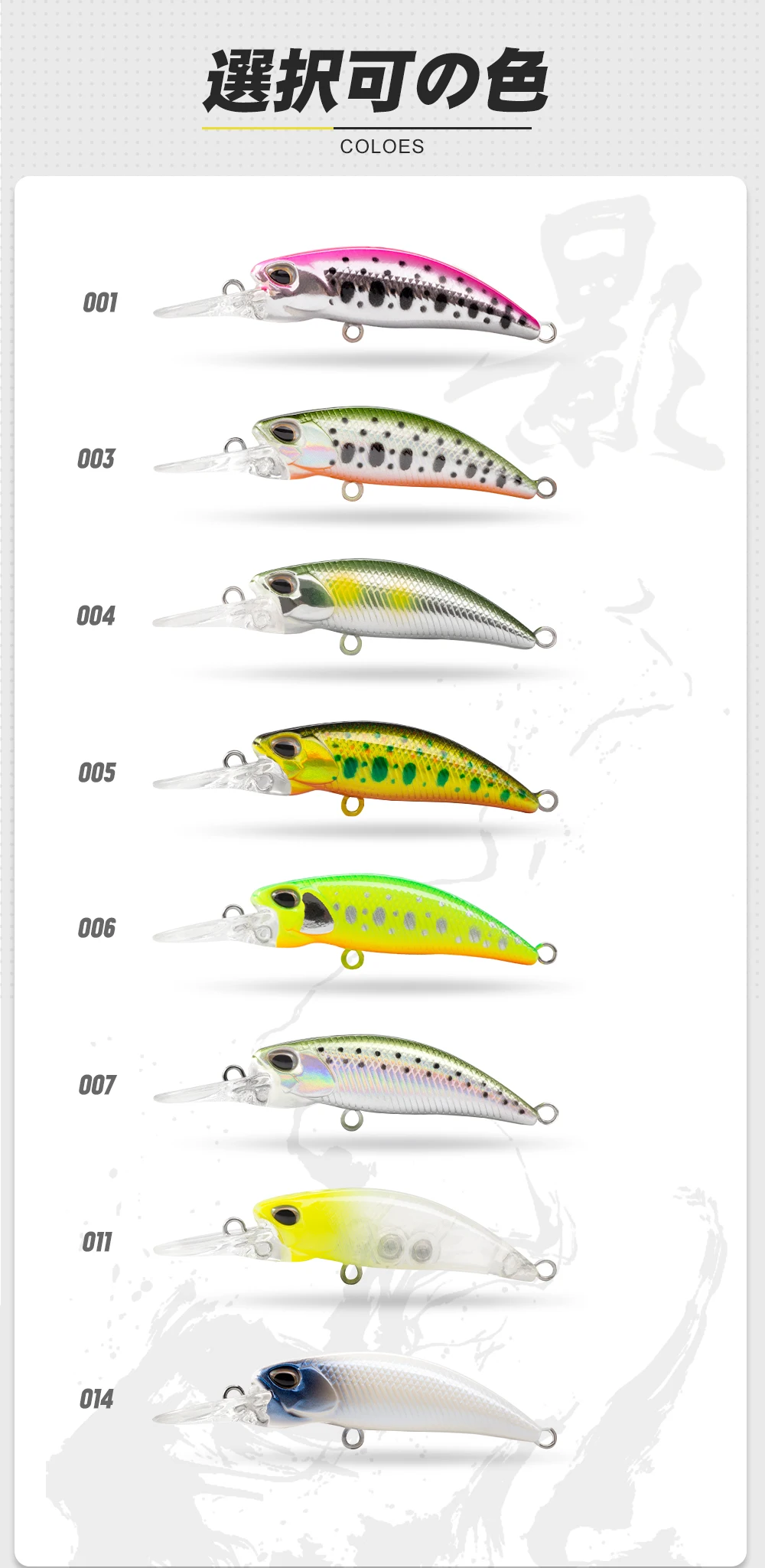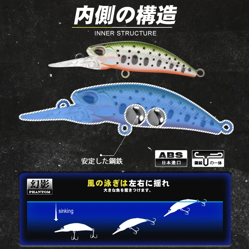 Реализация отличной литейности и превосходного отклика на действияПлоский, но Тяжелый Корпус создает резкий отклик для тяжелого весаТонущий Минноу, «голова копья рюки». Его начало действий быстро и способноПоследовательное подергивание стержнем, в течение короткого расстояния. Это такжеОснащен высокой производительностью плавания, способной справиться с постоянно осложняющимисяТок главного речного потока. Кроме того, мы стабилизировали осанку полетаБольшое расстояние и точность литья. Вы сможете попасть в это милое место!