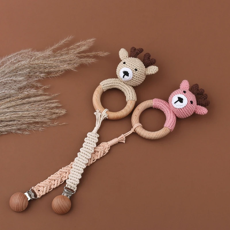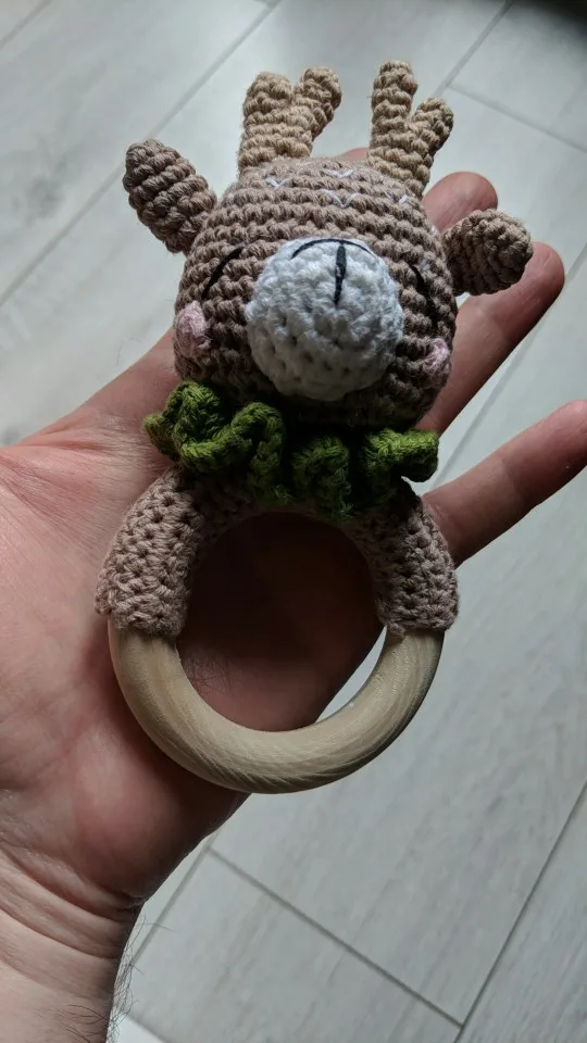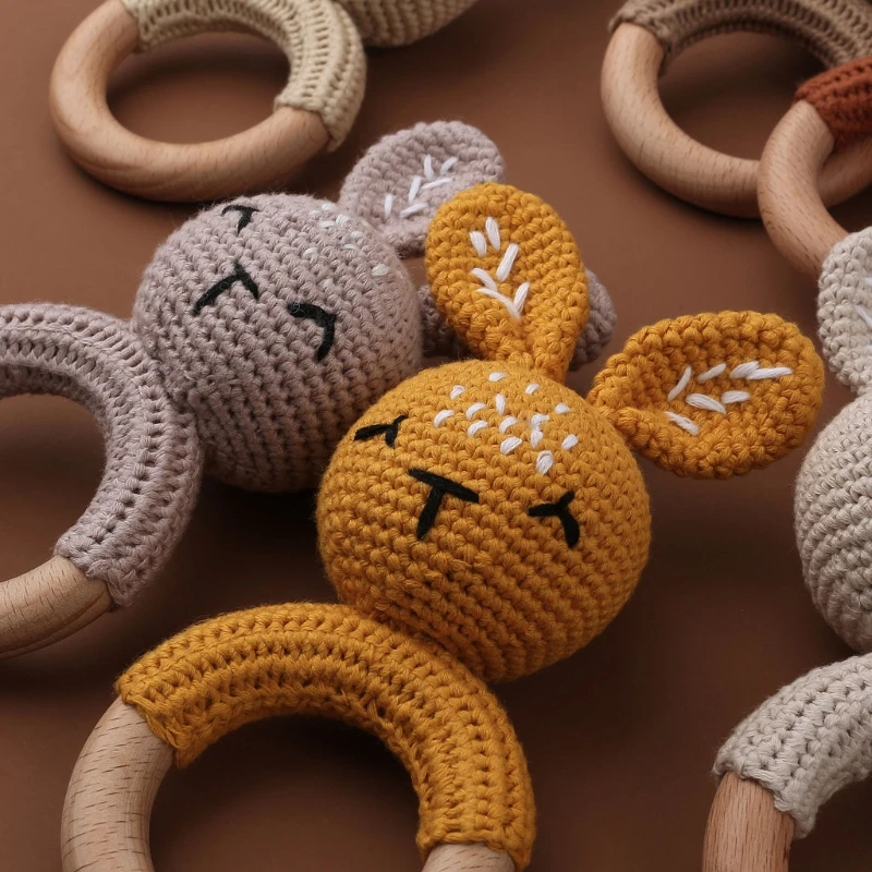 Деревянная погремушка-грызунок, вязаный кролик, 1 шт.
