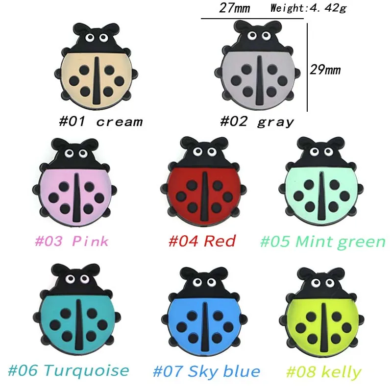 -Силиконовый Прорезыватель божьей коровкиКоличество: 10 шт.Размер: 29 мм * 27 ммЦвета: 8 цветов-Вы можете оставить необходимый цвет в комментарии при размещении заказа.-Стимулирует Сенсорное, визуальное и двигательное развитие.-Силиконовый Прорезыватель обеспечивает мгновенное облегчение прорезывания зубов и массаж десен.-100% BPA-free,FDA одобренный пищевой силиконовый бисер. Без фталатов, кадимов, свинца, ПВХ или металлов.-Легко моющиеся. Рекомендуется дезинфицирующие салфетки для пустышки.Стирать перед использованием!Никогда не оставляйте товар без присмотра