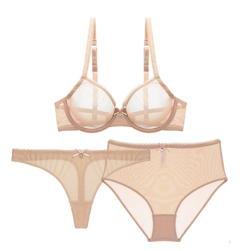Комплект нижнего белья из прозрачного трикотажного бюстгальтера и т...