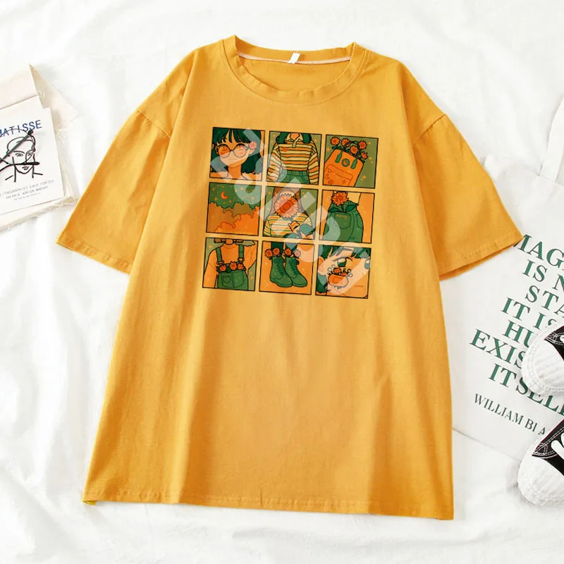 Футболка женская оверсайз с коротким рукавом, топ в японском стиле ...