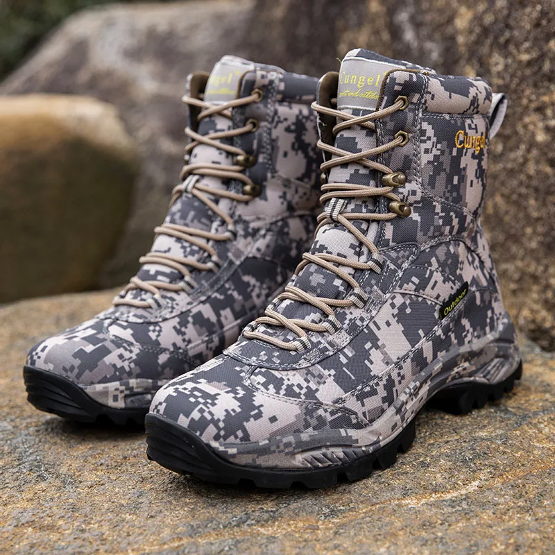 Весенне-зимние камуфляжные мужские ботинки для активного отдыха, охоты, альпинизма, водонепроницаемые, плюшевые, теплые, мужские, повседневные, до середины икры, карго, походная обувь