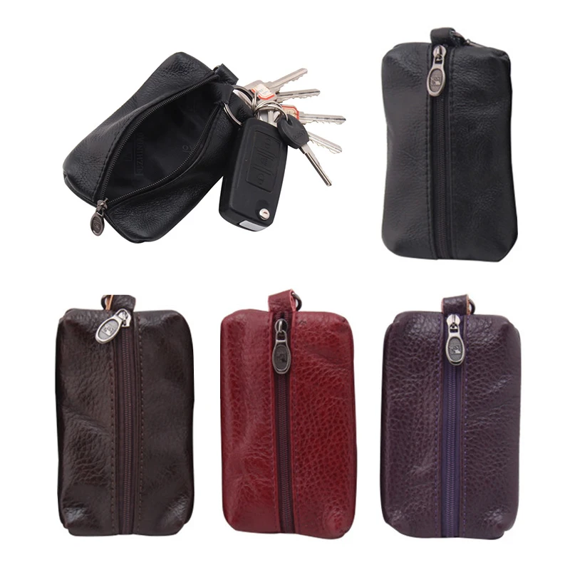 Чехол для автомобильных ключей для мужчин и женщин, кошельки из мягкой кожи, ключницы на молнии, органайзер, сумка для кредитных карт