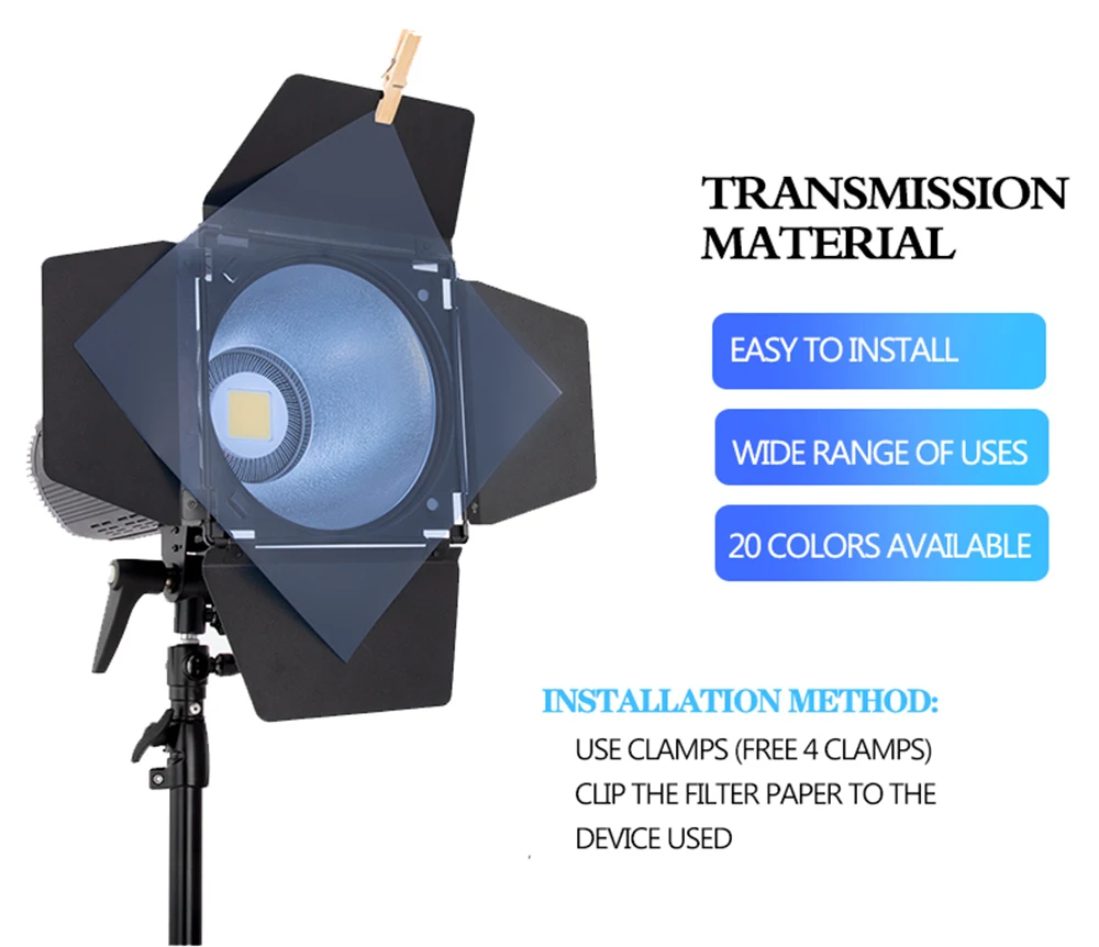 Профессиональный цветной фильтр 100*100 см 15,39 дюйма * 39 дюйма для бумаги с 4 зажимами, светильник для сцены, светильник