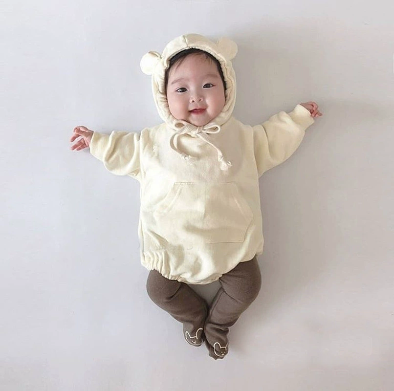 2021 весенне-осенние детские боди с милыми медвежьими ушками для мальчиков и девочек, Детский комбинезон с капюшоном, свитшот, боди
