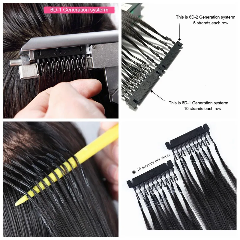 Волосы для наращивания 6D-1, 100% натуральные волосы, пряди 6D 0,5 гпрядь, 16, 20, 24 дюйма #60, 1B, коричневые