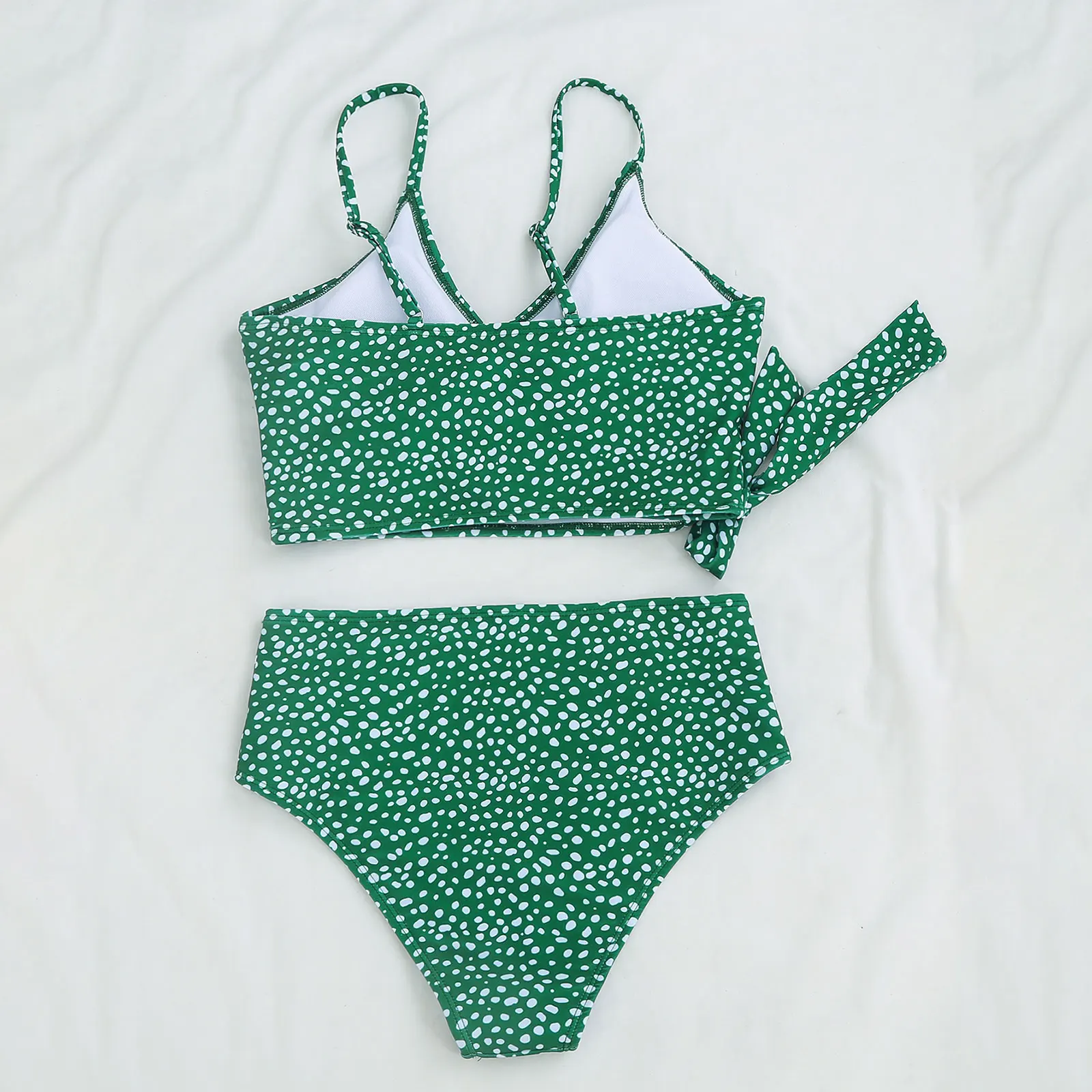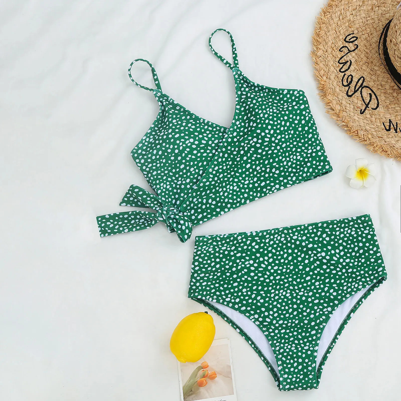 Женский комплект бикини, сексуальный перекрестный бандажный бюстгальтер в горошек и трусики, купальник, двойной костюм для отпуска, плавания, пляжа