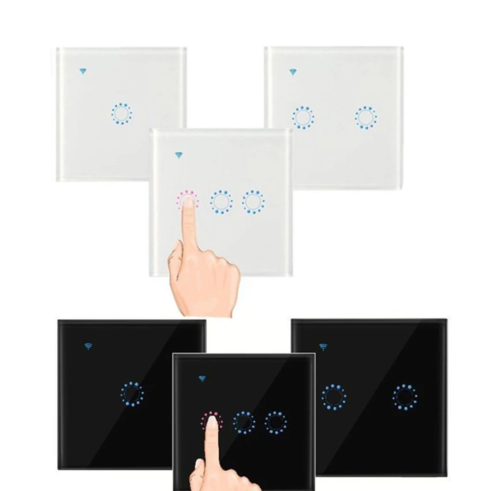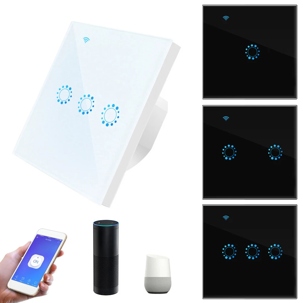 Wi-Fi Смарт Настенный стекло Панель светильник переключатель 1 2 3 Gang для Alexa Google Home сенсорный Экран переключатель Стекло Универсальный EUUK розетки