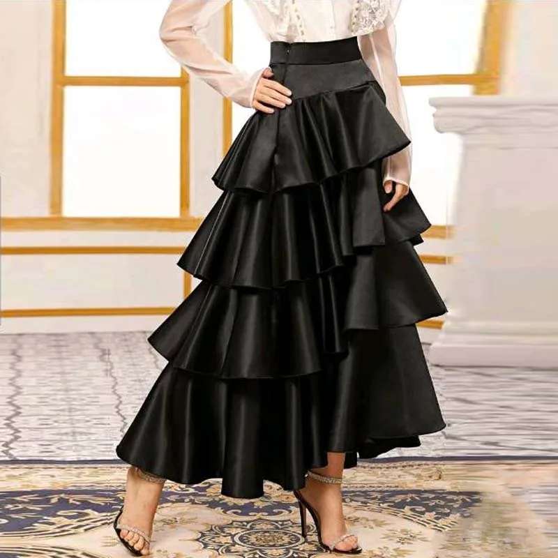 Элегантный ярусный сатин с рюшами Женская юбка индивидуальный заказ Длинные юбки для выпускного наряд подружки невесты Вечерние Платье на молнии со сборками на талии и Для женщин юбка Формальные Saias