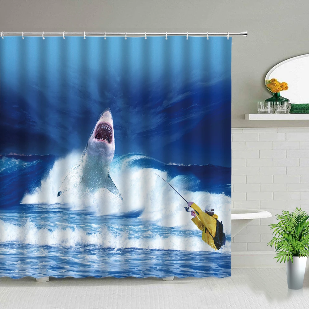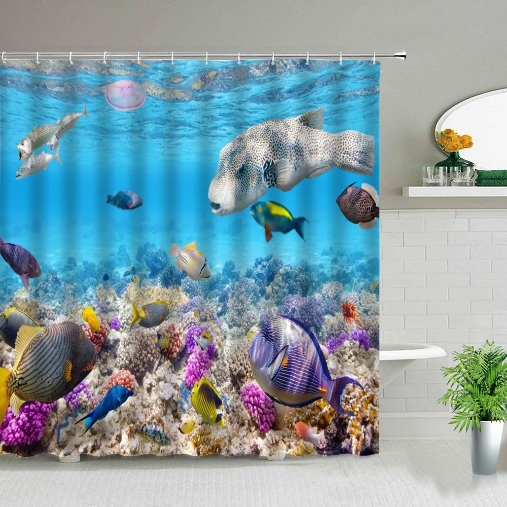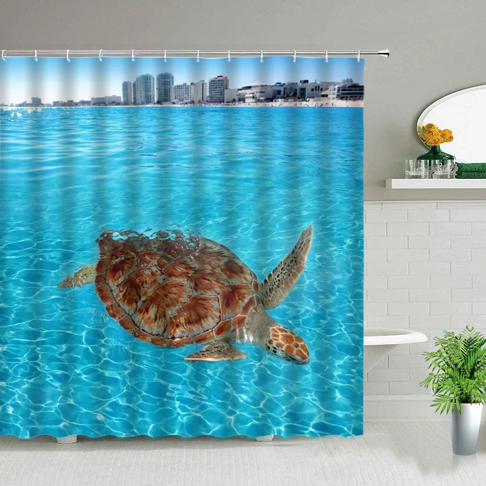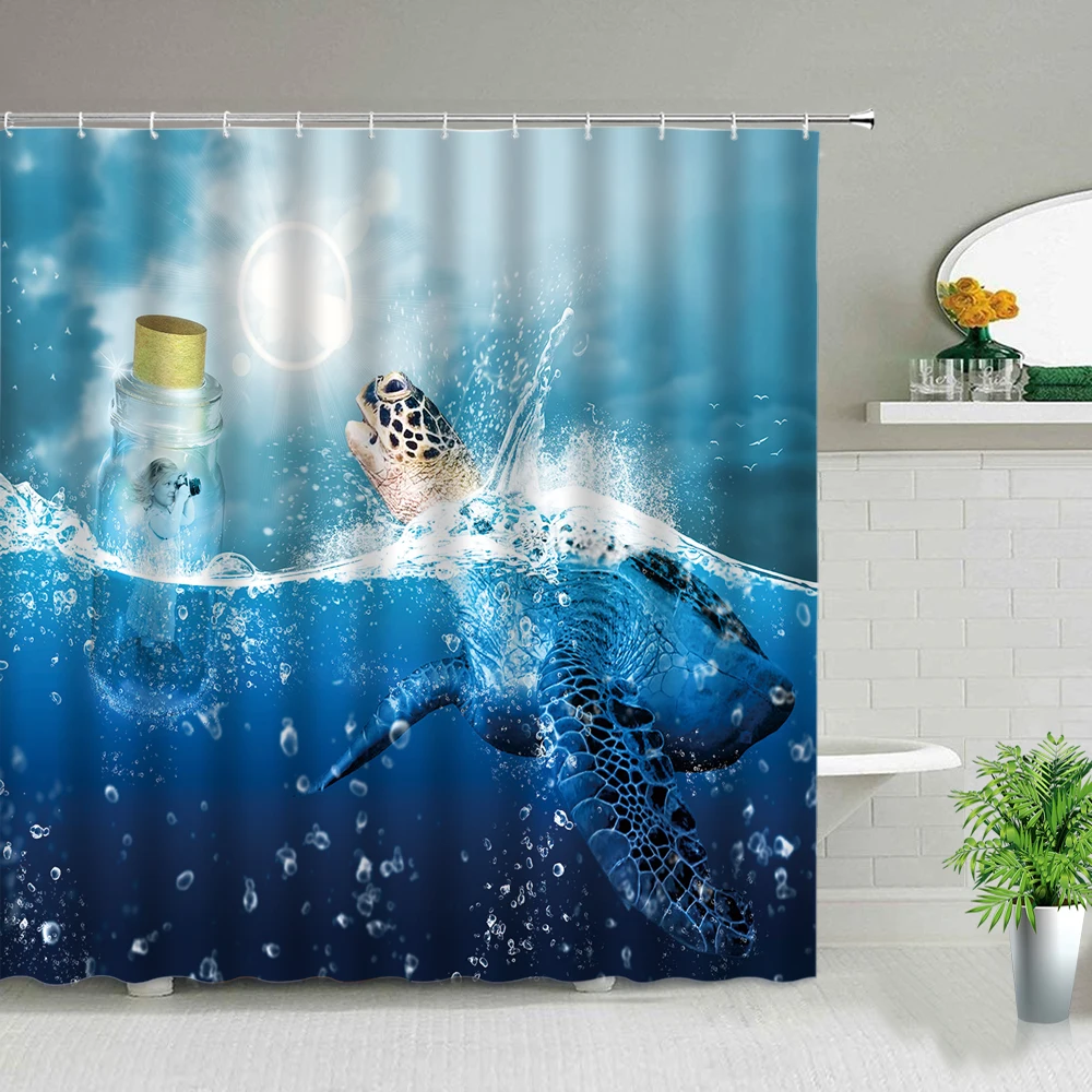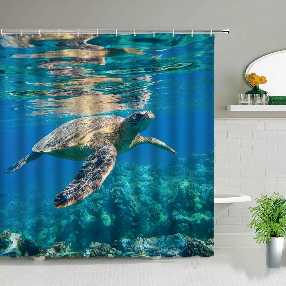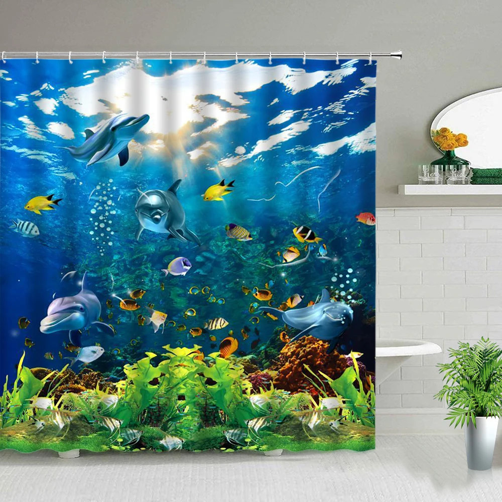 Занавеска для душа в виде дельфина, морской черепахи, морские животные, подводный мир, тропические рыбы, декор для ванной комнаты, водонепроницаемая занавеска из полиэстера