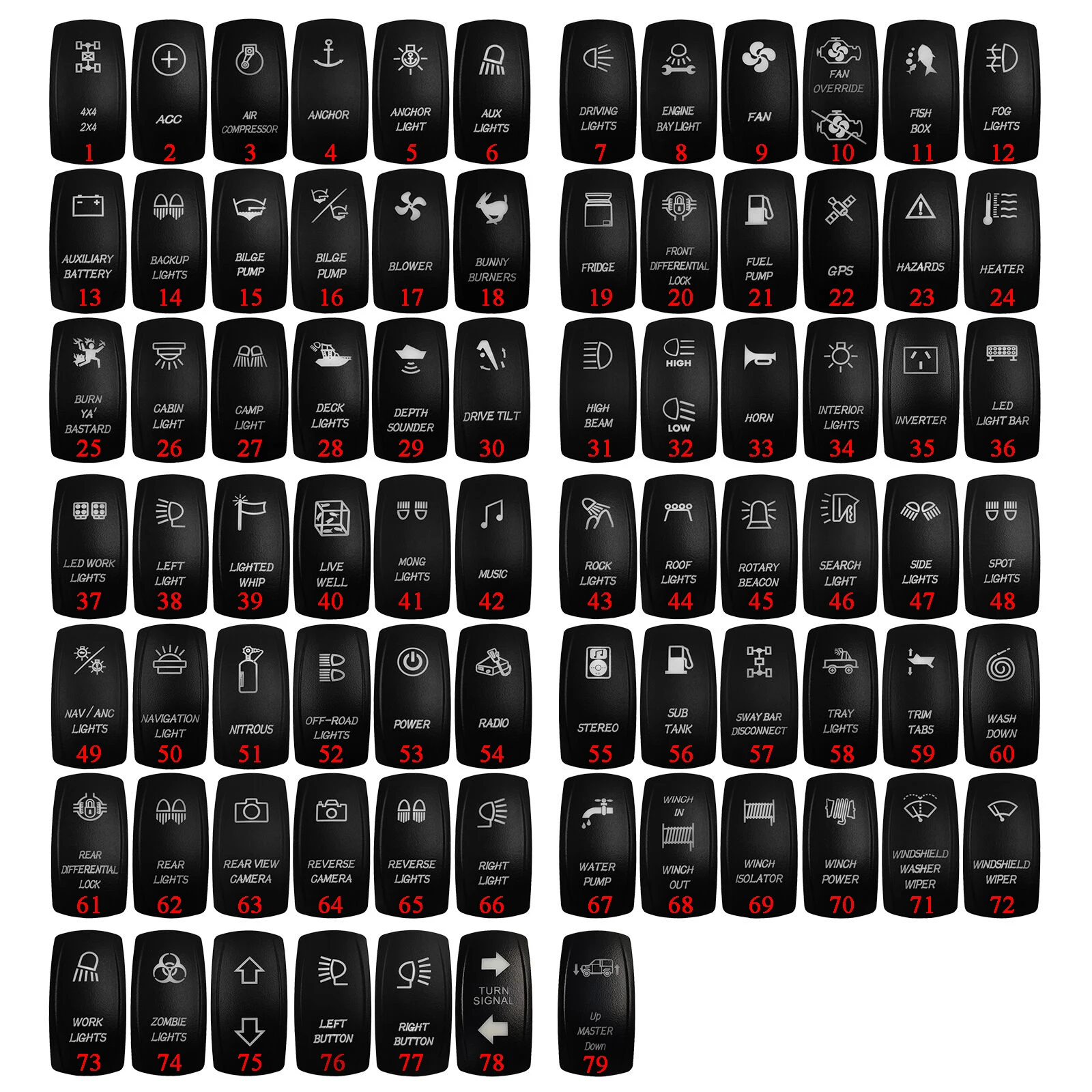 Переключатели являются стандартными Carling/ARB размерами