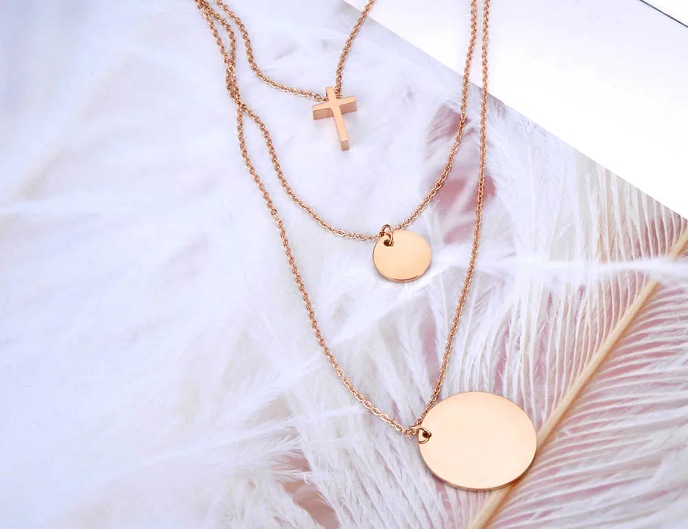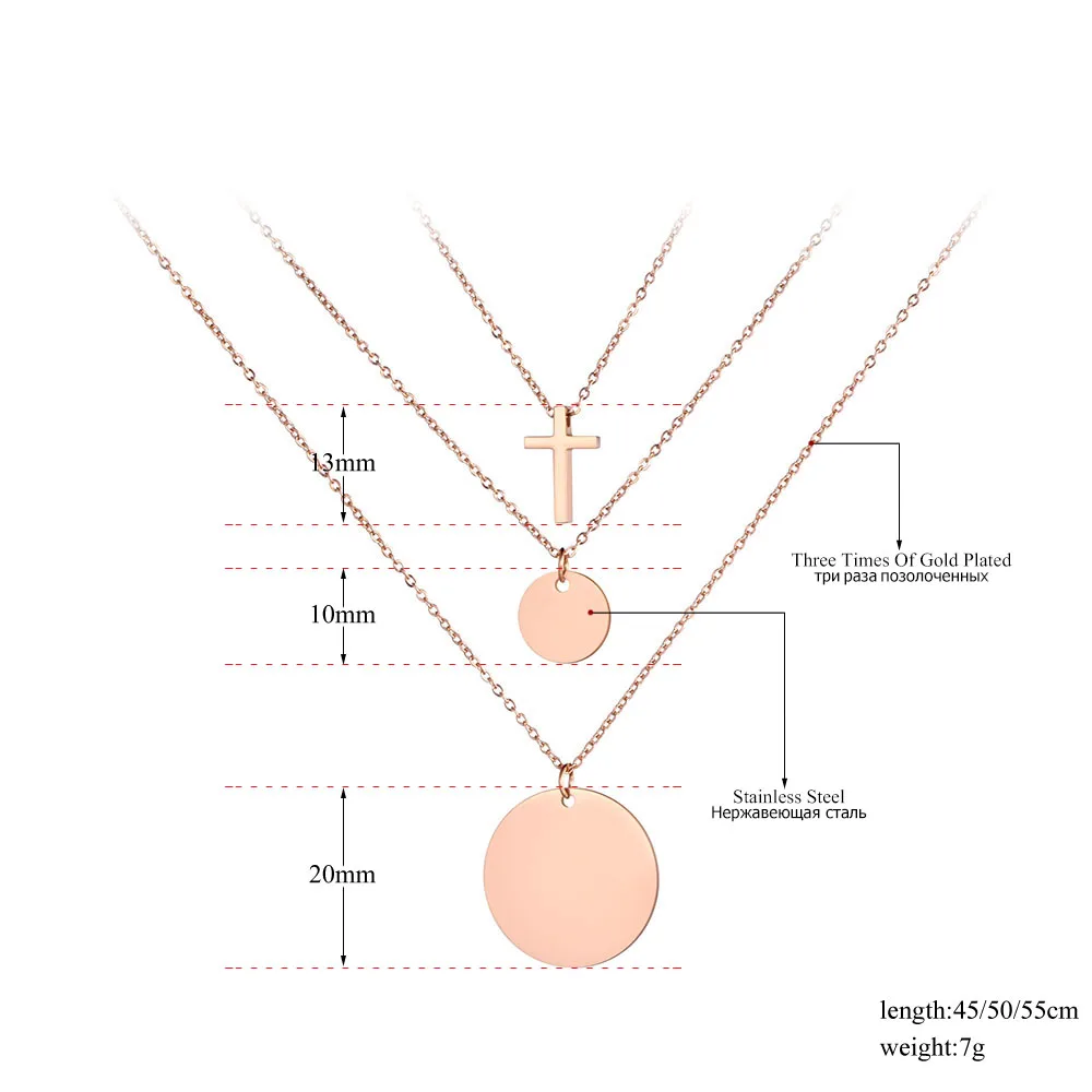 Ожерелье женское, трехслойное, из нержавеющей стали, с крестом, ювелирные изделия, цепочка с подвеской