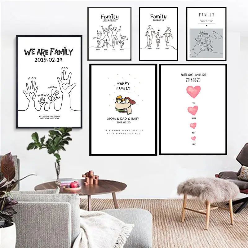 Подарочный постер с именем семьи, настенный художественный постер на холсте, мультяшный Милый принт, домашняя гостиная, картина для украшения интерьера