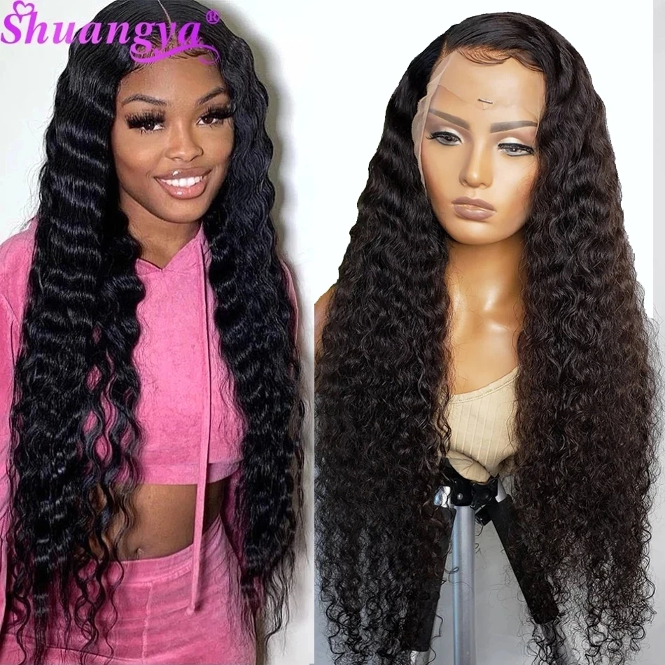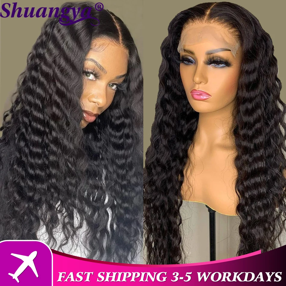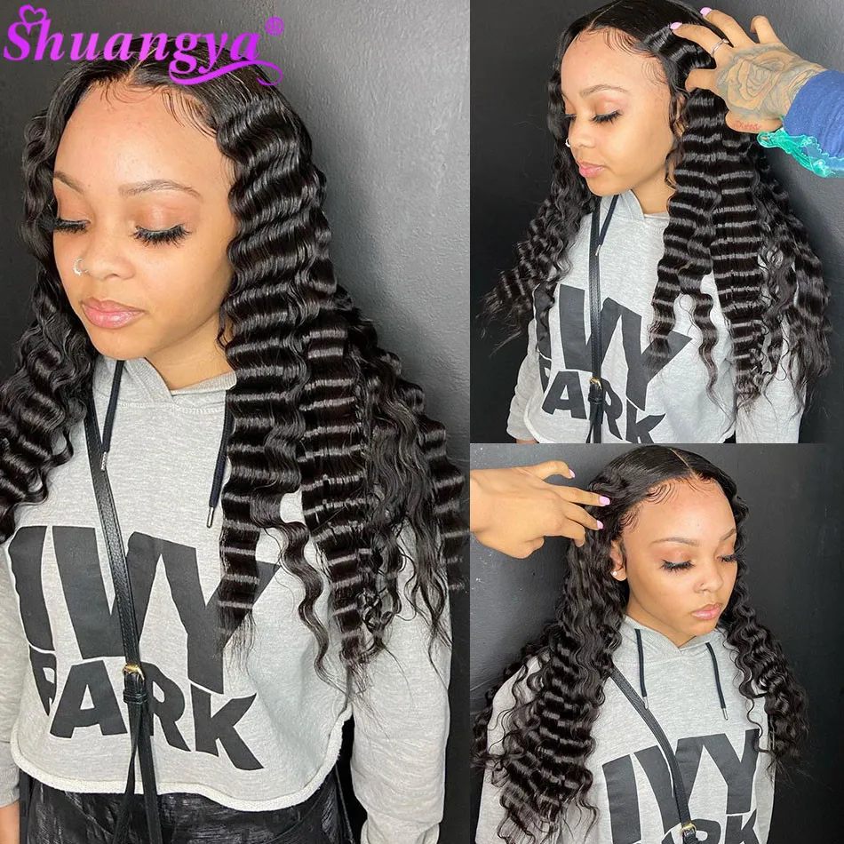 Парики из фронта шнурка свободные глубокие волнистые кружевные парики Shuangya Remy человеческие волосы кружевные парики для черных женщин высокая плотность