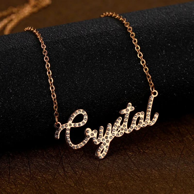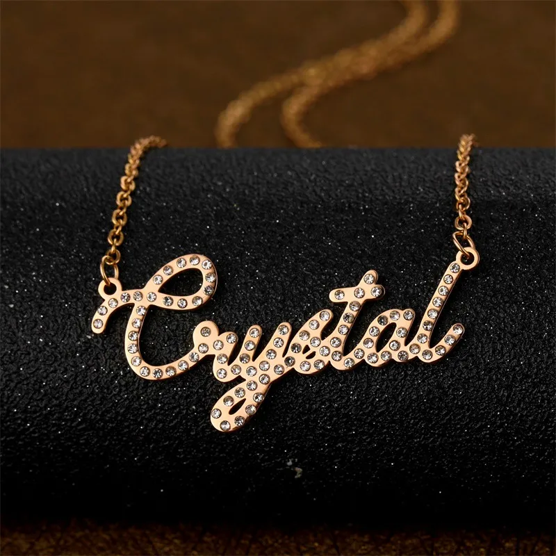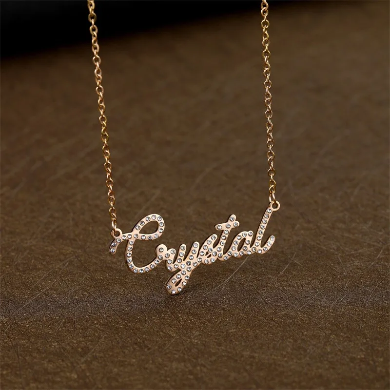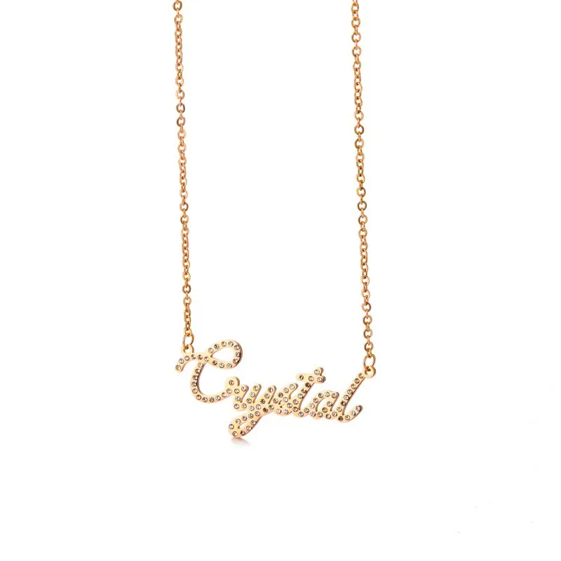 Именные ожерелья из нержавеющей стали с цирконием для женщин, индивидуальное ожерелье, ювелирные изделия, новогодние подарки, кулон-табличка с именем