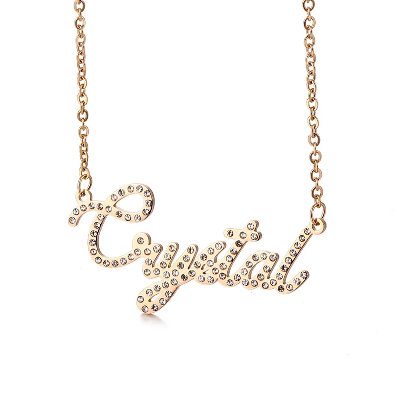Ожерелье из нержавеющей стали с фианитами с именем на заказ, ожерел...