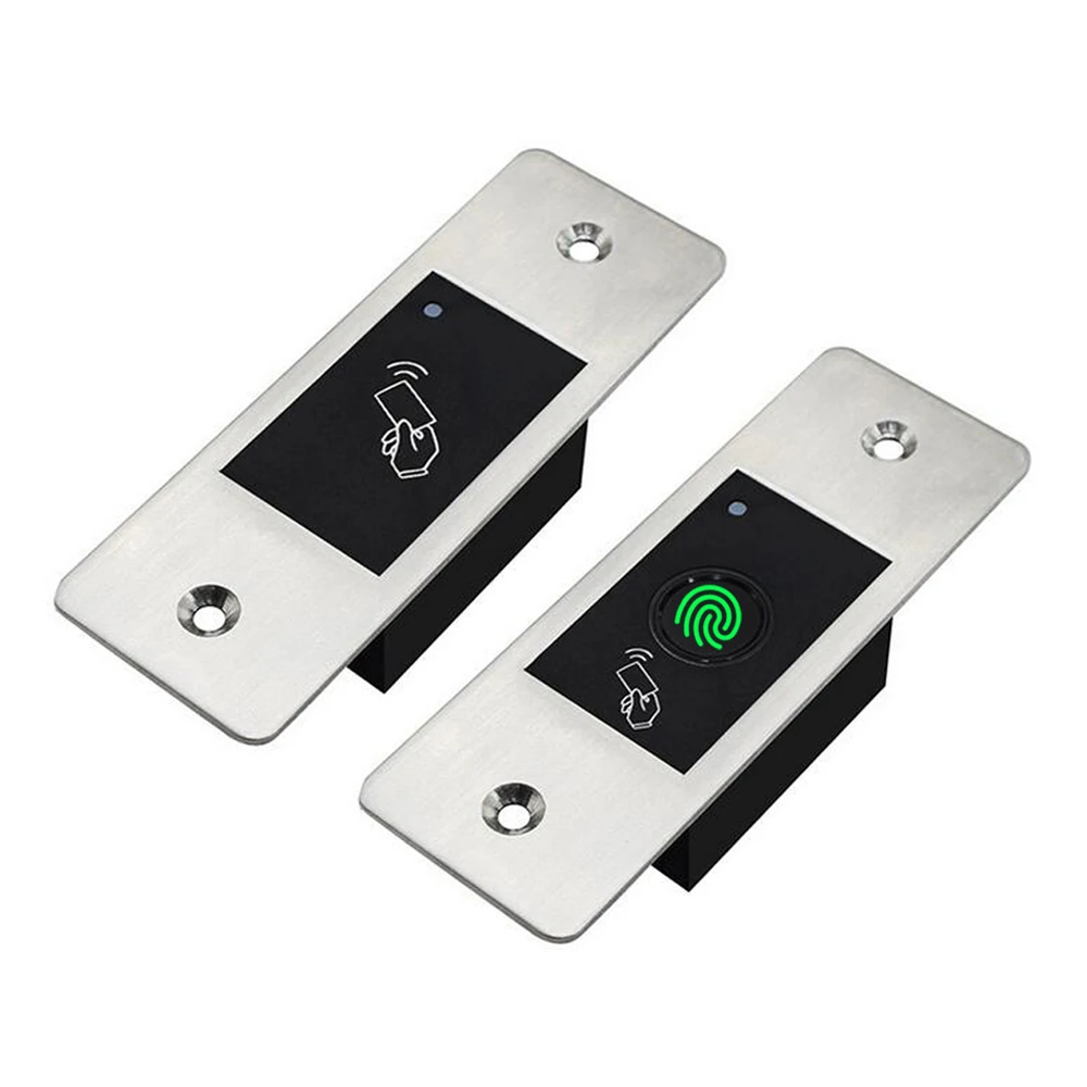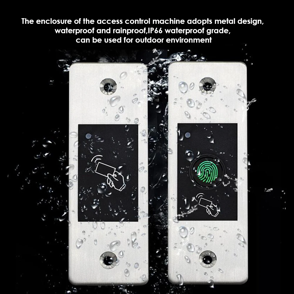Устройство представляет собой мини-металлический чехол, Автономный RFID/контроль доступа по отпечаткам пальцев со встроенным дизайном, поддержка 125 кГц EM карты. Это идеальный выбор для установки на дверной раме.