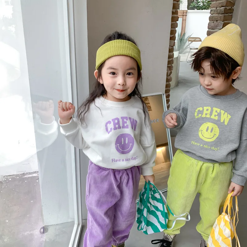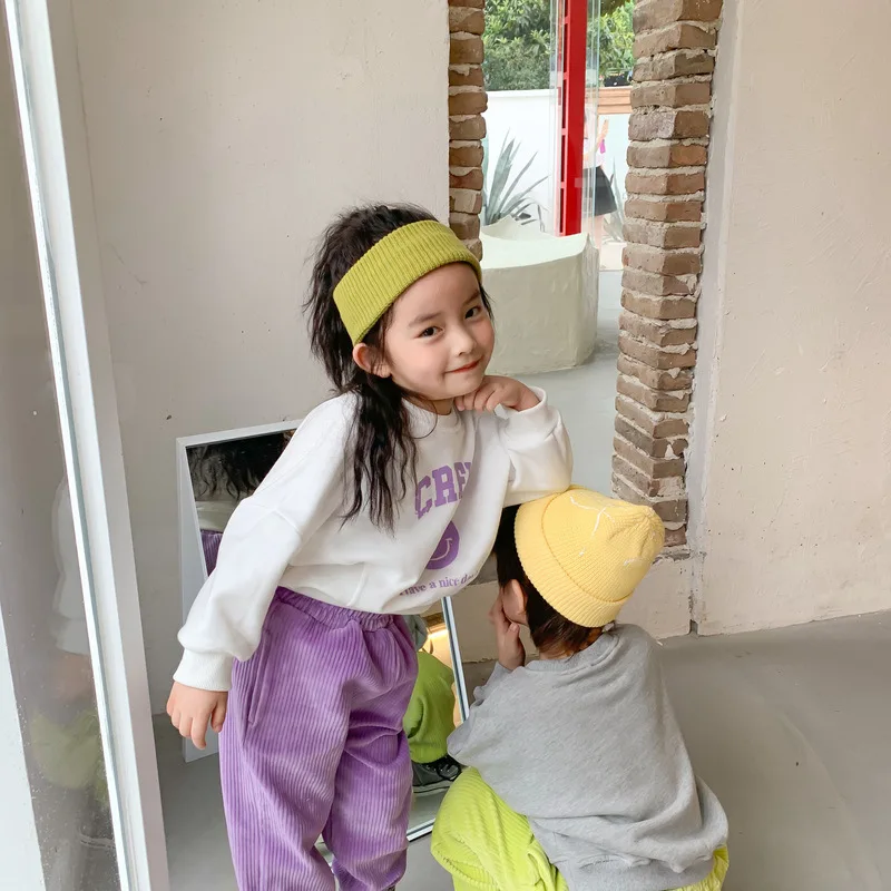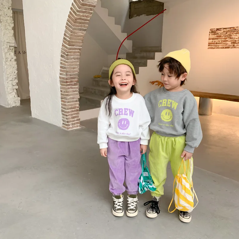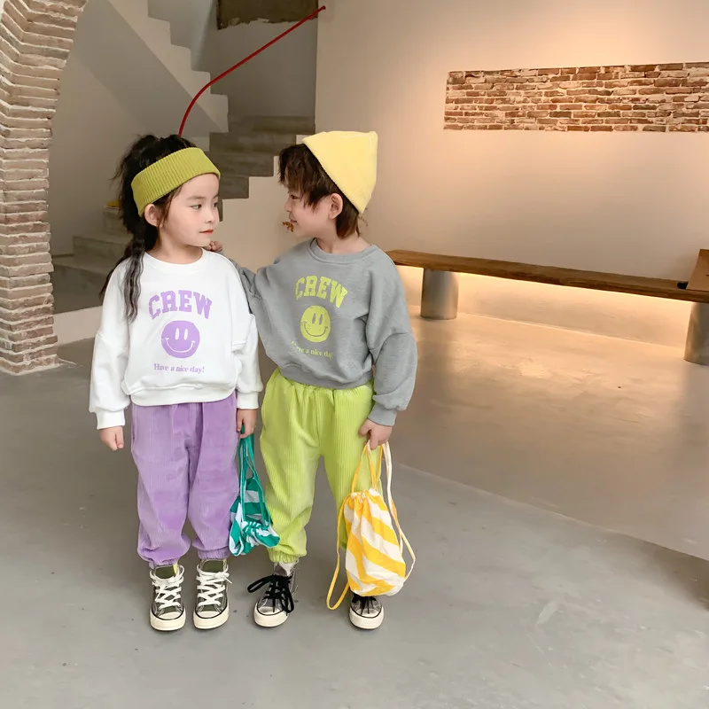 2021 Весна Новая коллекция одежды для маленьких детей Одежда для детей; Комплект для мальчиков и девочек с буквенным принтом, свитер вельветовые брюки-морковки комплект из 2 предметов