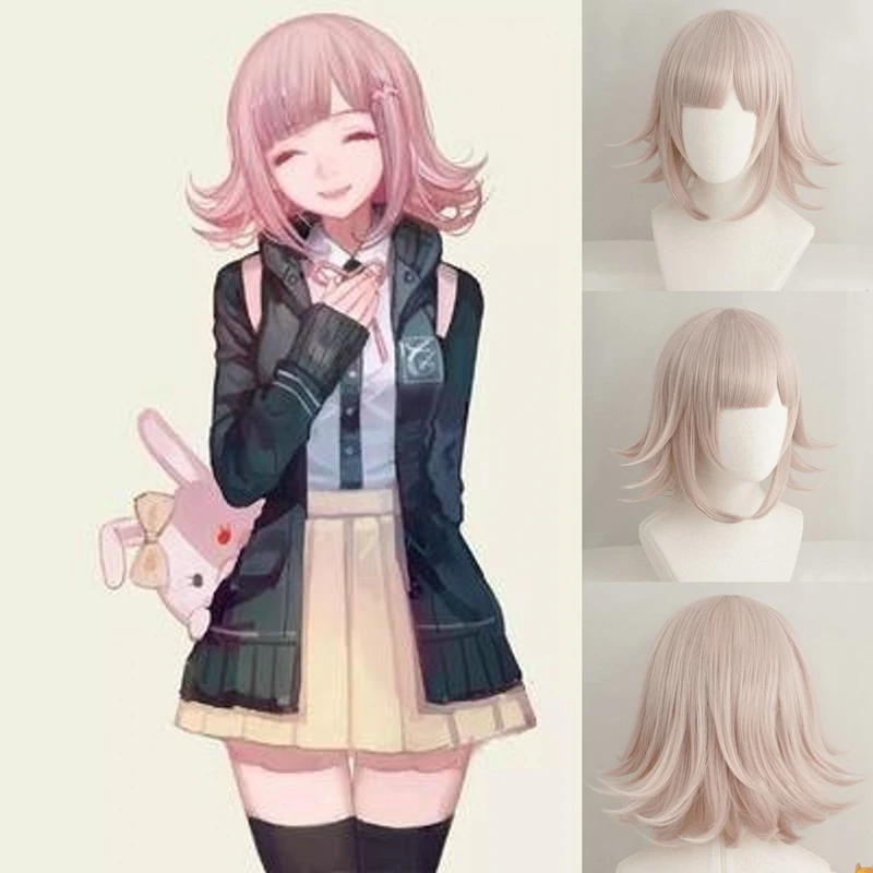 Женский парик для косплея Dangan Ronpa Danganronpa, розовый длинный...