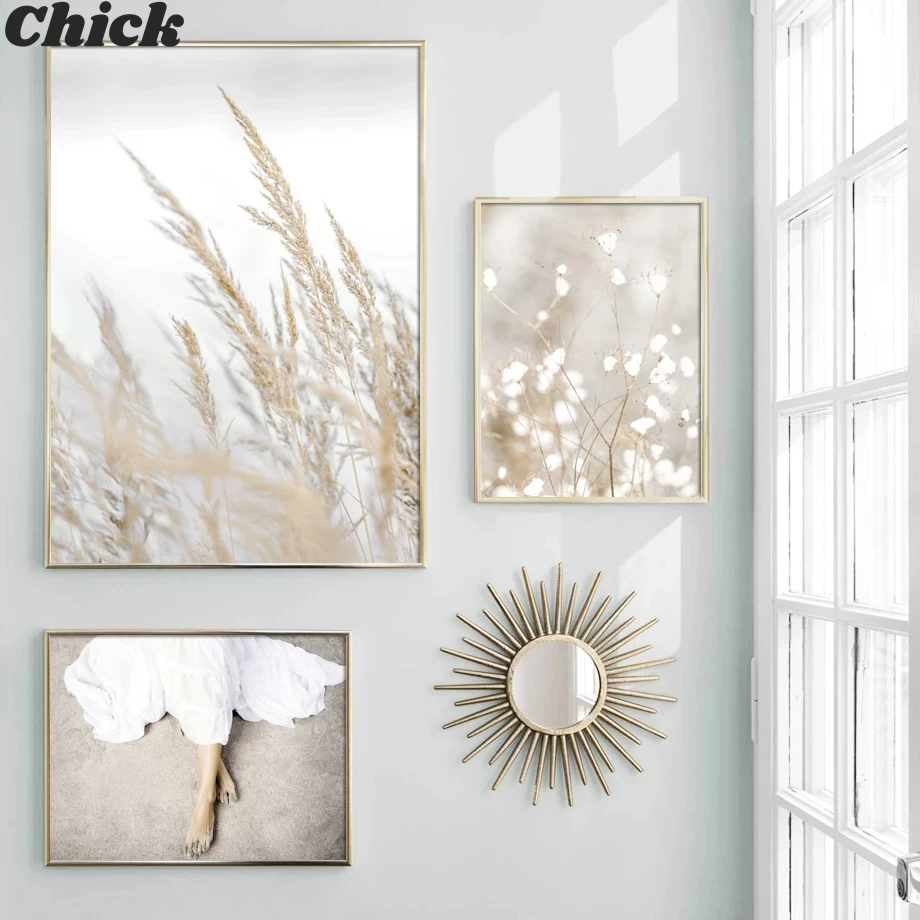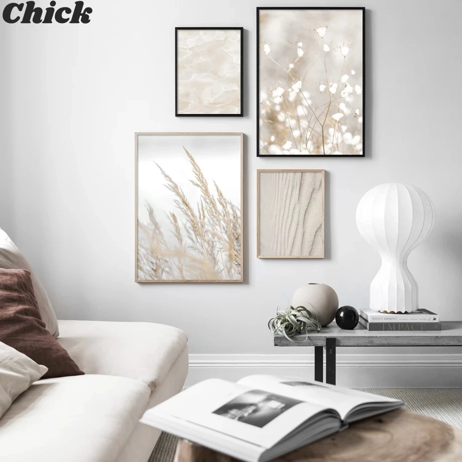Бежевый тростник высушенные растения Цветок искусство стены картина...