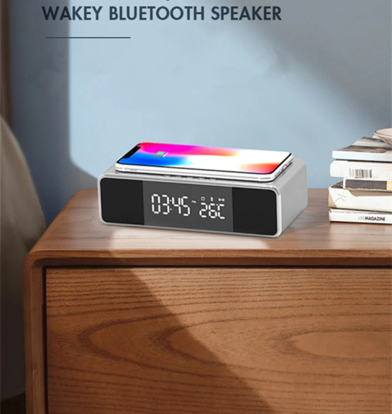 Многофункциональный Будильник с Bluetooth, радио, светодиодный беспроводной сабвуфер, музыкальный плеер, настольные часы с беспроводной зарядкой